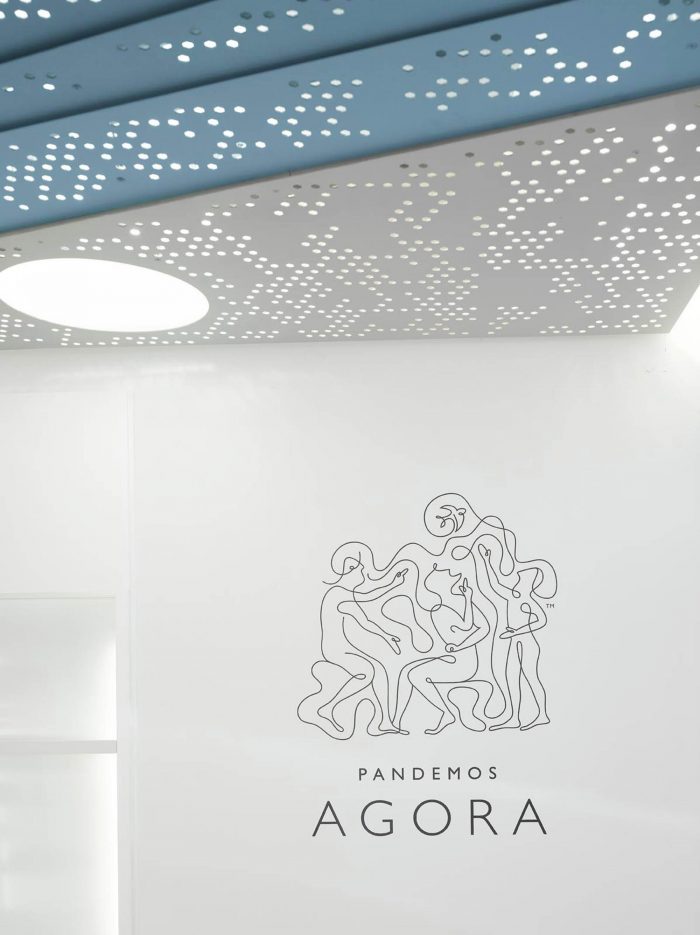 KLab was inspired by the Cycladic islands architecture. The shop is long and narrow with a small façade at the street. The new furniture curvy walls absorbed any obstacles of the existing structure as columns, electrical switchboards etc and produce space of different size and depth for the products. The whiteness, the smooth curves in combination with a degraded perforated blue ceiling provide a sense of purity and simplicity in rather complex forms. The “Greek aura” is redefined in an abstract interpretation of the intense Cycladic light and of the vernacular Cycladic architecture.