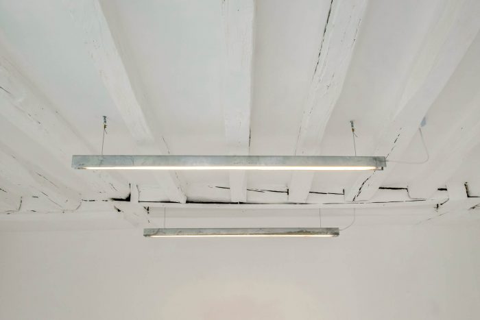 The aim of the project is to create a stroboscopic effect in this originally long flat. Like the partition, no piece of furniture will reach the ceiling in order to expose the beams.