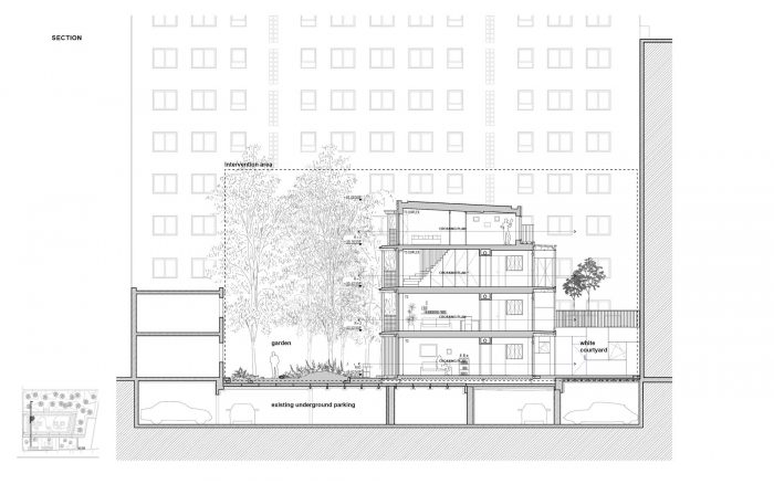 In conclusion, the project makes it possible to completely renew the site, and on a more global level, to think about collective housing and about the environmental approach which is both renewed here in order to create a new sustainable urban pattern capable of qualitatively growing the city on itself.