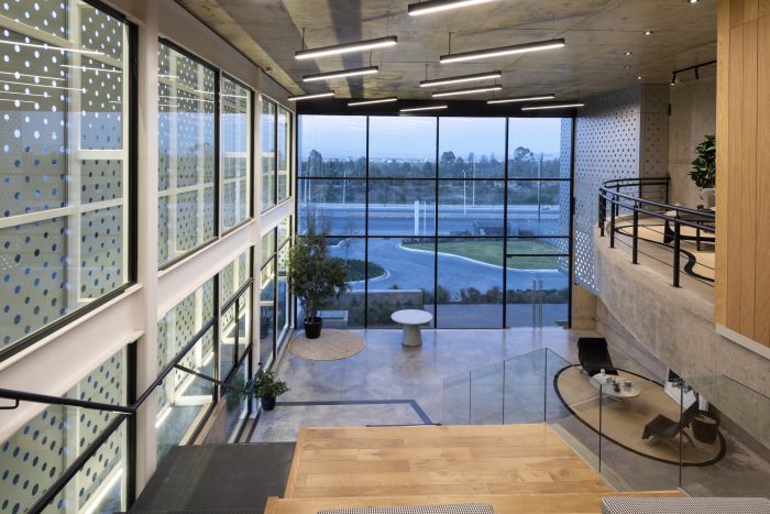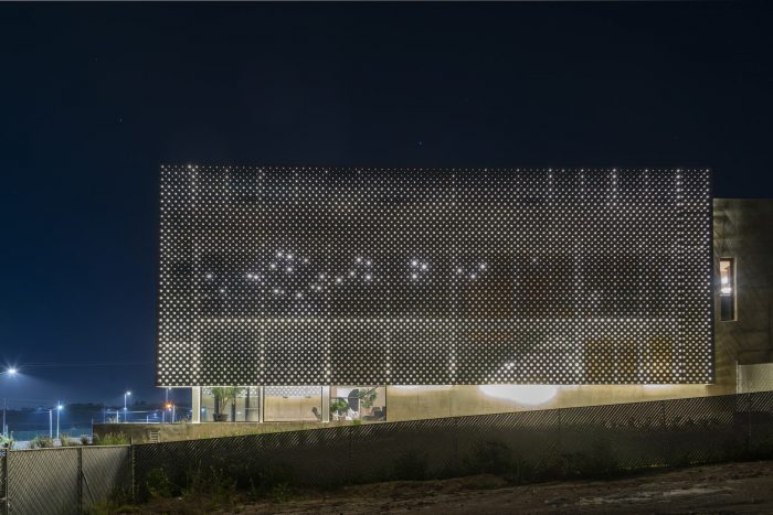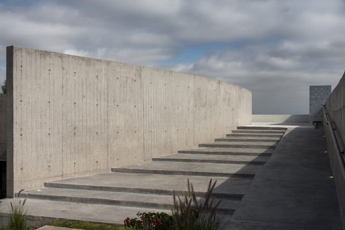 The materiality transitions from the stereotomic character of the concrete forms that meet the terrain to the lighter perforated skin and glass that engages with natural light and views of the surroundings. The binary language expresses its relation to the interior program, being the solid what houses the more private spaces and the permeable what envelops the collective gatherings. The building experience is constantly transformed with the passing of time and light.