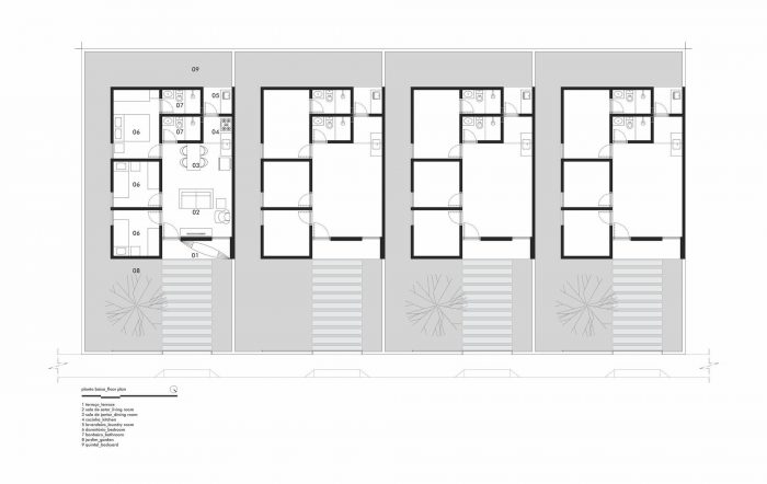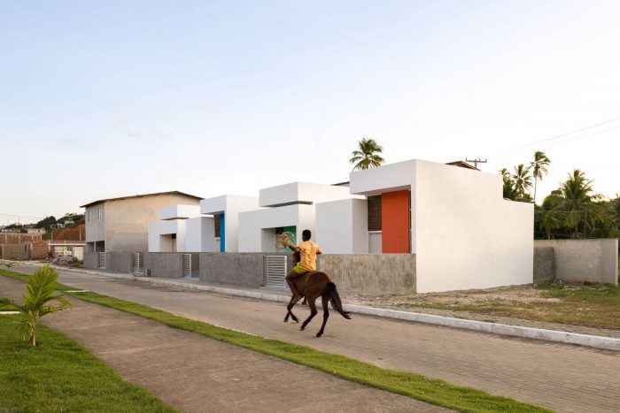 Simplicity is usually rational and assertive, thus, it guided the challenge of drawing technically possible project guidelines for four embryonic houses with 58.5 m2 of usable area each. Inserted in modest plots of dimensions 8x20 meters and executed by low-skilled local labor, the construction period took just 120 days.