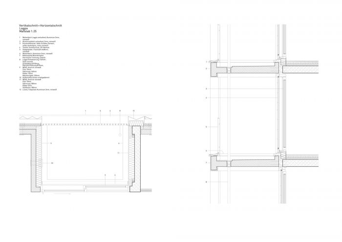 这座商住两用建筑的外部都是明亮的白色,具有空灵、优雅的外观,而布局则是独特的、有区别的。三个多边形的结构安放在一个覆盖整个占地面积的底层基座上。从保罗-格哈特街(Paul Gerhardt Allee)看去,这三个结构中最高的一个作为新社区的一个醒目的、受欢迎的门户。另外两座则相互抵消,高度交错。