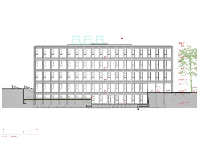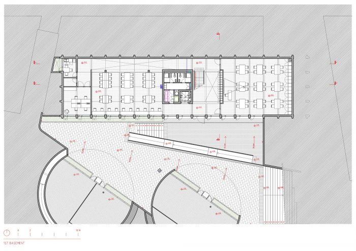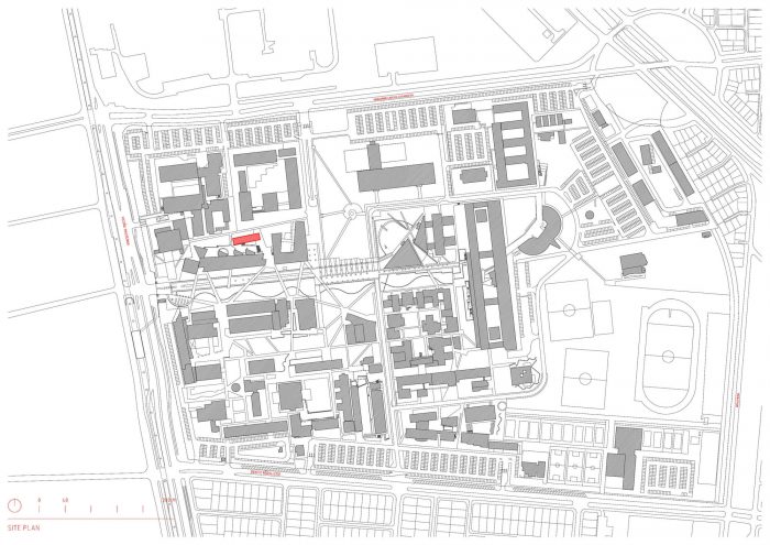 In addition to the site location and its surrounding buildings, the density of the campus and the number of different formal languages existing on the different buildings, define the initial idea of the project; the construction of a building that starts from the repetition of elements that can operate in the place with neutrality and therefore to go unnoticed for those who walk through the campus.