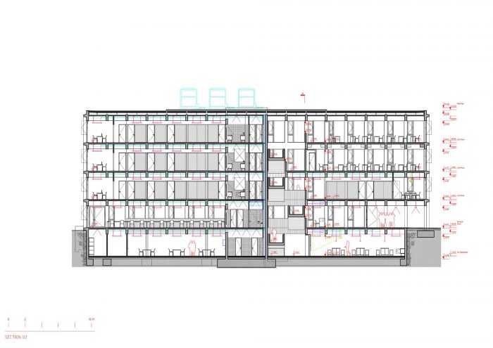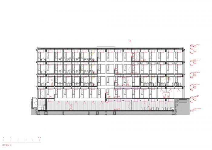 除了场地位置和周围的建筑外,校园的密度和不同建筑上存在的不同形式语言的数量,决定了项目的最初想法;建筑的建设从重复的元素开始,这些元素可以在这个地方以中立的方式运作,因此对于那些走过校园的人来说,不会被注意。