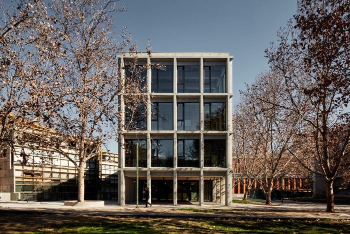 The building for the school of Pedagogy in Secondary Education is located within the San Joaquin Campus for the Pontifical Catholic University of Chile. The building is adjacent to the Faculty of Education Building, built and expanded over the years 1995 and 2006 showing the versatility and adaptability of the requested program. In this way, the project, together with the existing buildings, make a space dedicated to Education within the 45 hectares Campus. Another condition of the project is to be located parallel to a secondary path of the campus behind a line of existing trees which will give protection and privacy to the project.