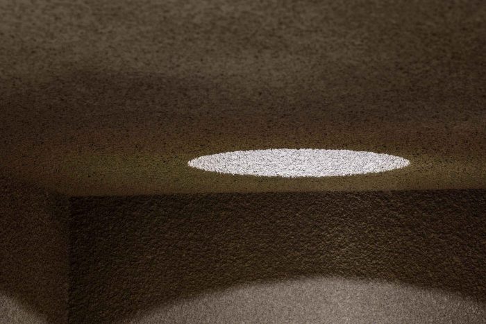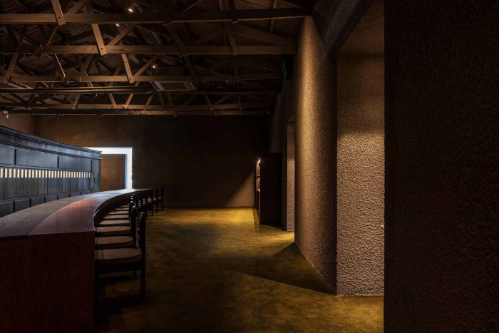 当你进入建筑时,气氛发生了巨大的变化。情绪的变化通过入口处正前方的物体开始。踏入主厅,由于颜色、照度和厚厚的地毯,你可以感受到视觉和触觉的变化。高高的天花板上的木质桁架增加了空间的结构美,穿过空间的弧形香水库以一种美丽和神秘的印象完成了情感的传递。