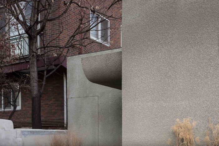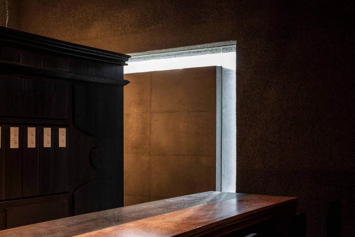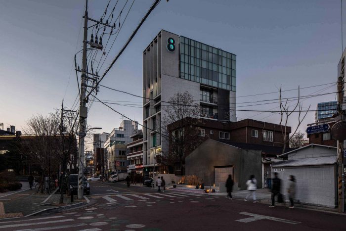 考虑到服务的特点,我们试图打造一个神秘和秘密的地方,并认为空间体验的核心是通过建筑内外的对比来改变情绪。通过将混凝土浇筑成典型的屋檐形状,完成了一个简单而有力的外墙。这也是在有无数形状、颜色和材料的城西洞中脱颖而出的有效方法,同时也吸引了人们的注意力和好奇心。