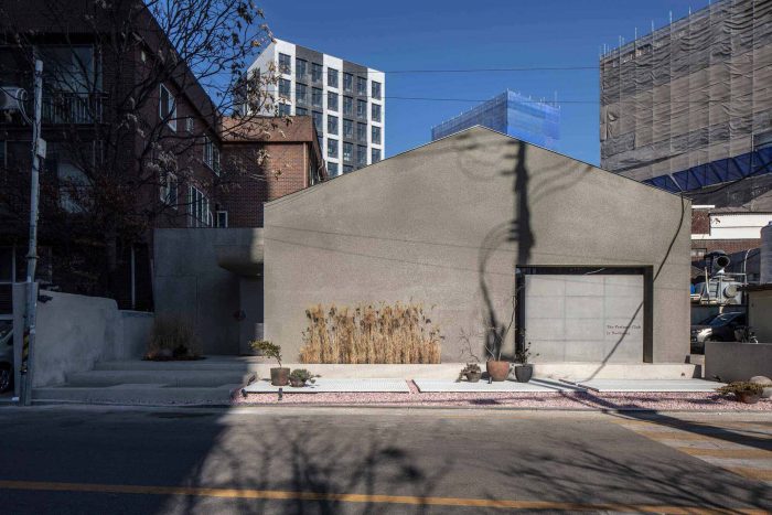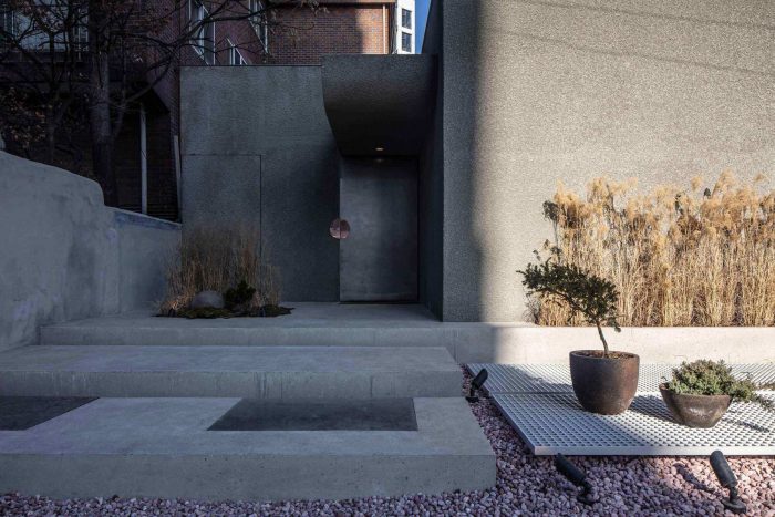 We tried to make a mysterious and secret place considering the character of the service and thought the core of the spatial experience was to change emotions through the contrast of inside and outside the building. By pouring concrete into the typical house shape with a gable roof, a simple yet powerful facade was completed. It was also an effective way to stand out in the middle of Seongsu-dong, where there are countless shapes, colors, and materials, and also drew people’s attention and curiosity.
