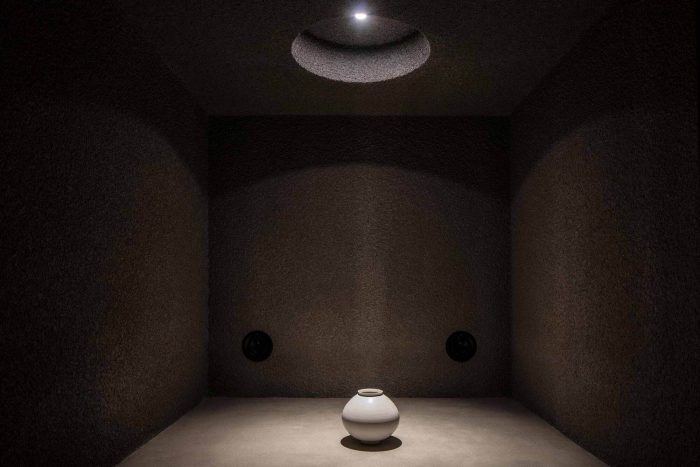 As you enter the building, the atmosphere changes dramatically. The change of emotion begins through the object right in front of the entrance. Stepping inside the main hall, you can feel the sense of visual and touch change due to the color, illuminance, and thick carpets. The wooden truss on the high ceiling adds the structural beauty of the space, and the curved perfume library which crosses the space completes the transfer of emotions with a beautiful and mysterious impression.