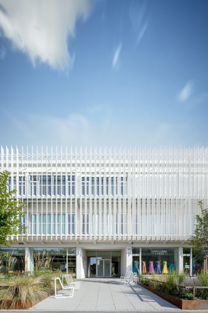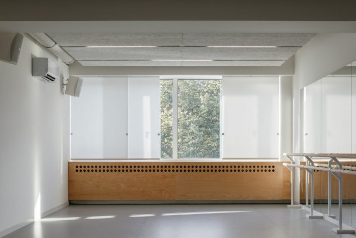 The investor’s close ties to dance and to the locality gave rise to a project that has breathed new life into a retail building set within a 1960s housing estate. As part of the transformation, a dance studio was built on the upper floors above the street-level shops and offices.