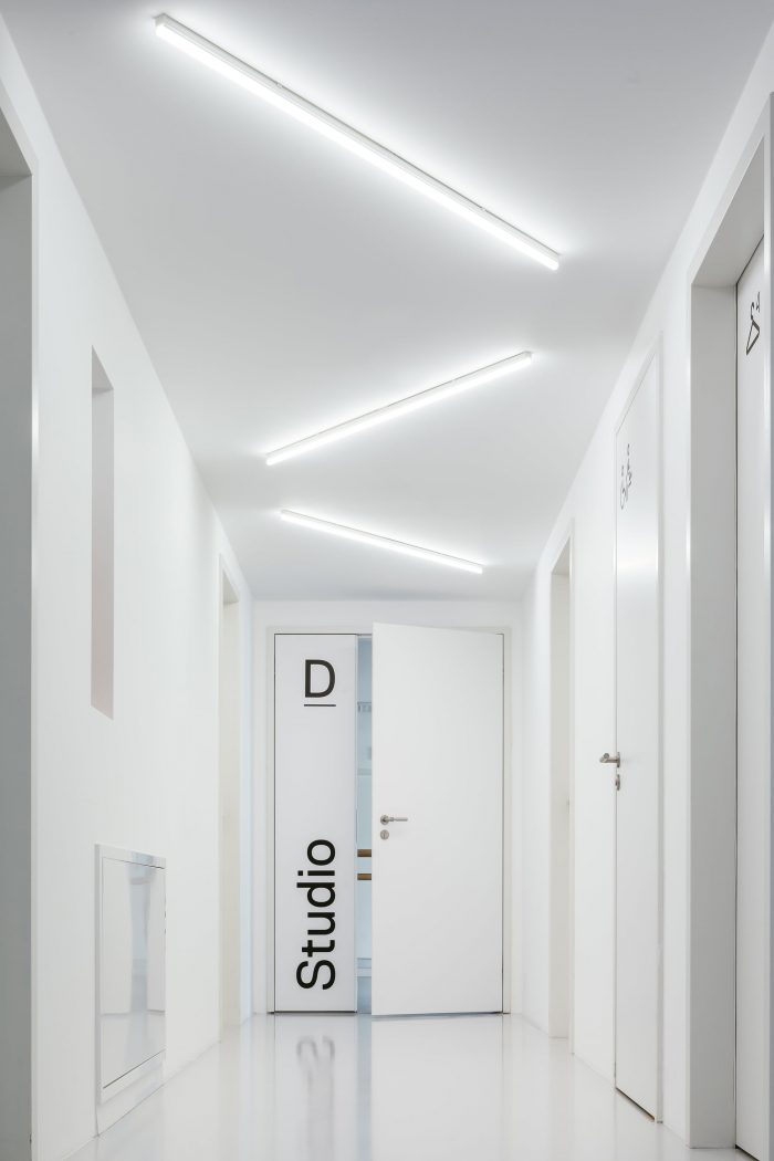 这座朝南的建筑位于一条繁忙的城市大道上,有电车服务。阳台平台的立面很有特色,由非典型弯曲的穿孔板条组成的浮动结构为其遮阳,同时也实现了纯粹的功能目的。该设计反映了为建筑的裸露正面提供一定程度的遮阳,减少街道噪音,以及为上层建筑扩展可用的室外空间的需要。这个概念产生了一个亲密的相互空间,阳台沿着建筑的整个表面延伸,向办公室和舞蹈室的用户开放。