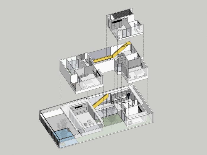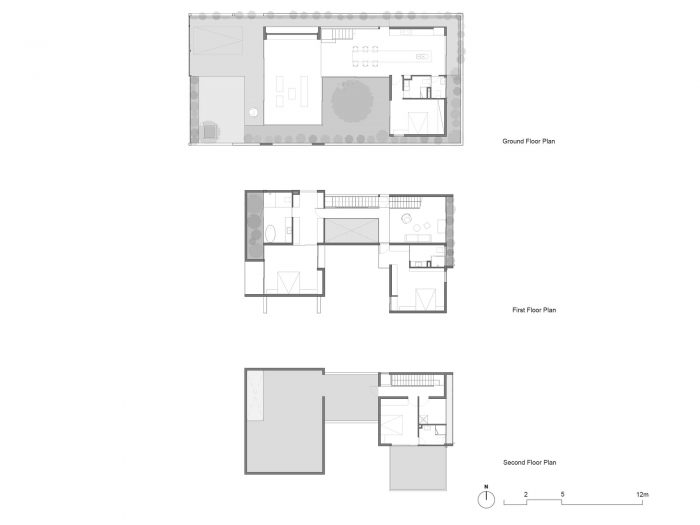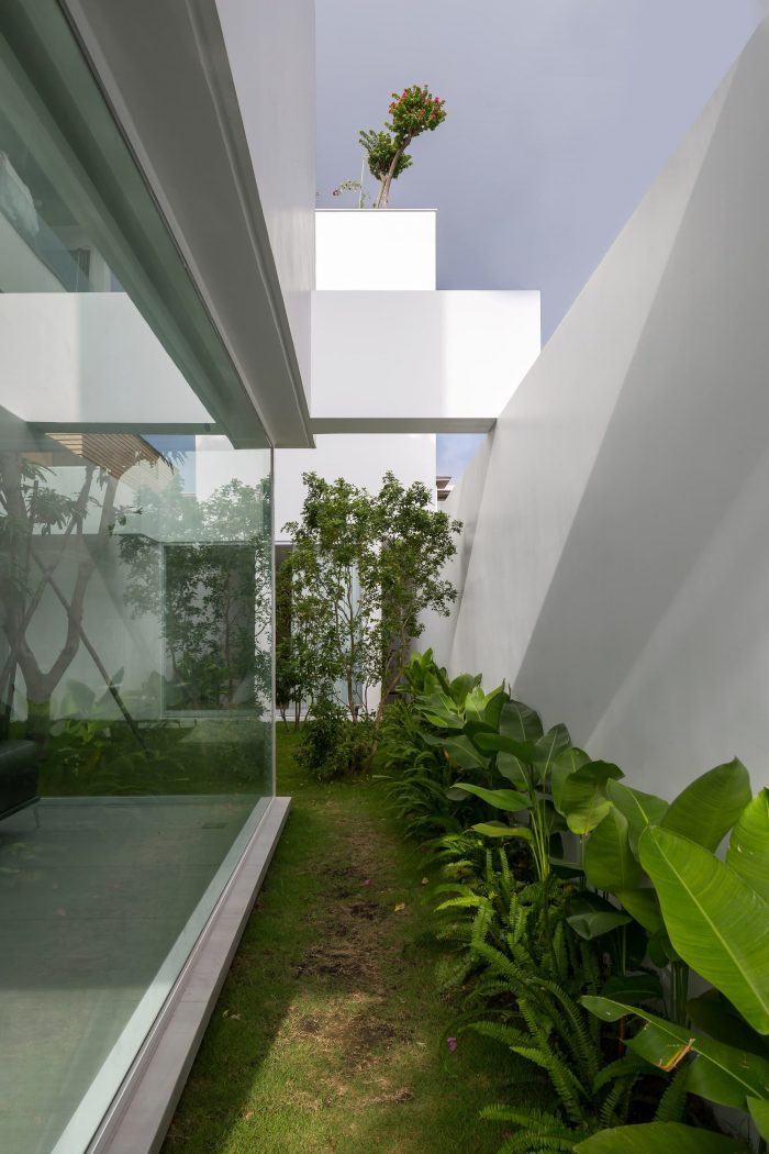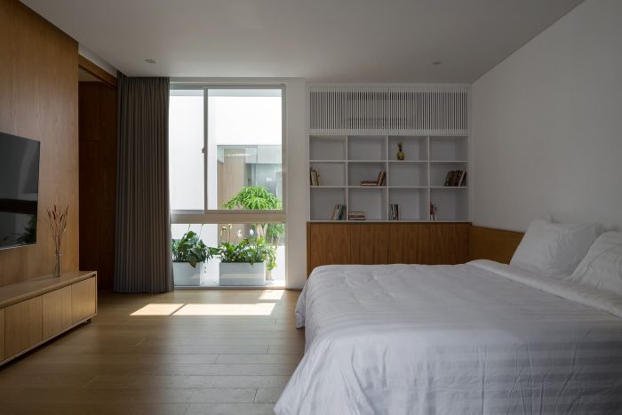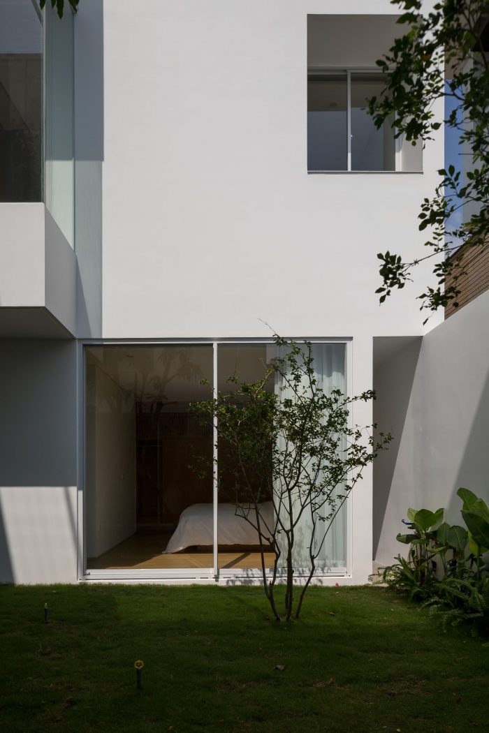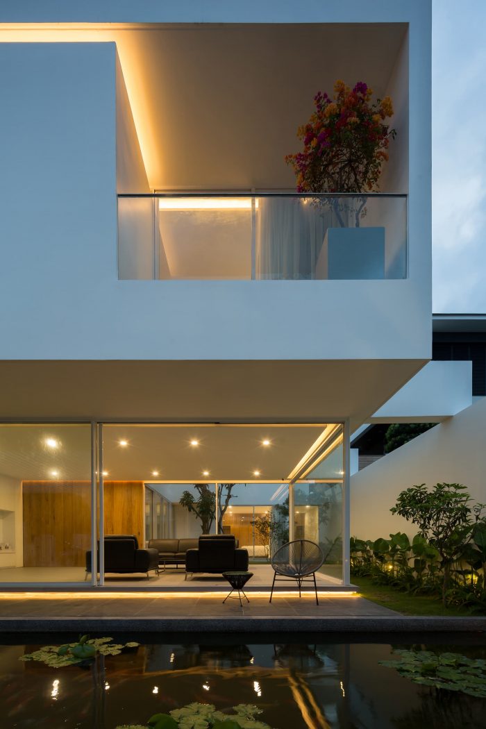 The connection of space brings the interaction of members in the house, which is the main factor we want to include in the project. The solution of subdividing the structure brings the garden and lake alternately into the work, so people keep in touch with nature and circulate the air better. We dedicate one-fifth of the area to the central garden so that all spaces are facing the garden, where everyone has a green space to relax.