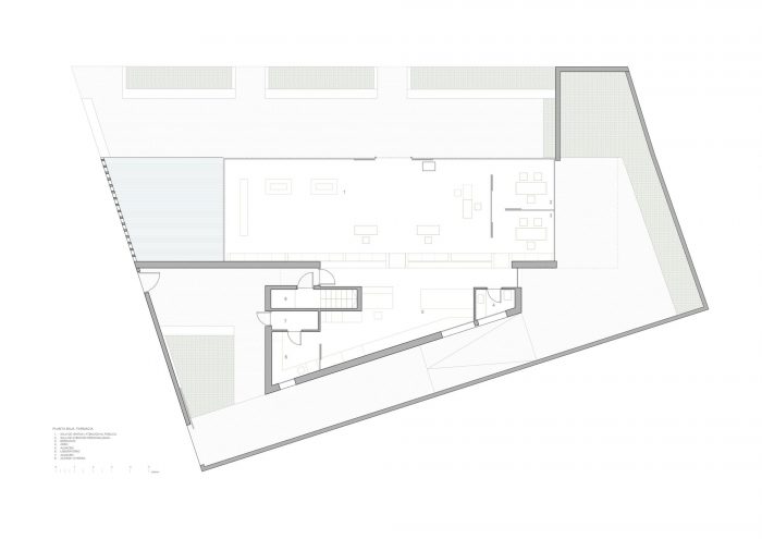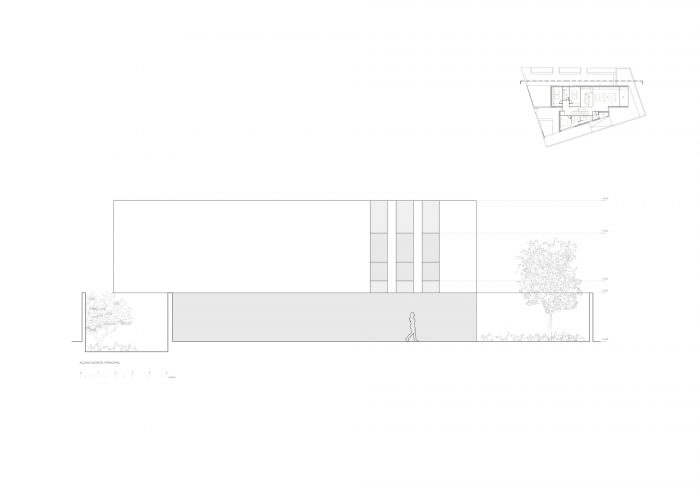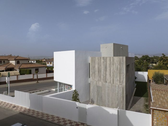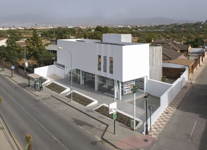 The project is placed in a small town in the area known as Vega de Granada. It pretends to create a new meeting point bonding the pharmacy to the surroundings. Presenting a new urban appearance which leads to a dialog between the white walls and the pureness of the unsurfaced exposed concrete. It is its own materiality - stone, water, and garden - the one which connects the different elements that configure the new urban space.