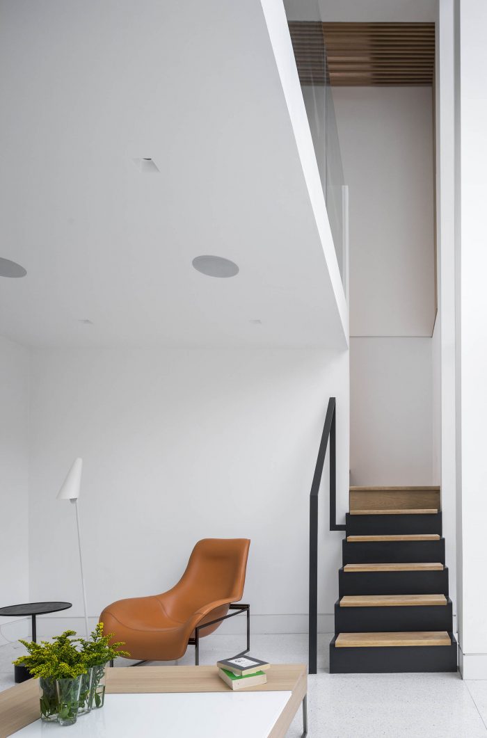 扩建部分包括一个新的厕所和厨房,以及一个新的卧室,公用设施和客厅。新的卧室和杂物间通向一个新的内部院子。厨房通过一个双层高度的空隙与下面的家庭室相连,落地玻璃将厨房和客厅与花园相连。