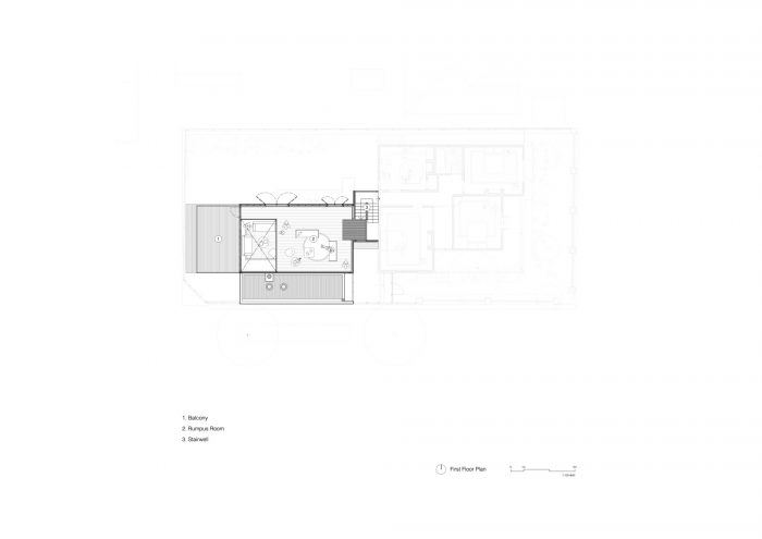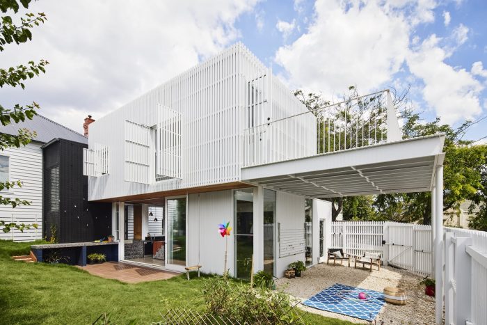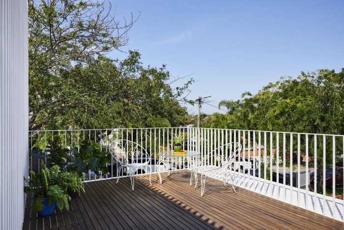 Picket House is a two-storey addition to a freestanding Edwardian timber house, on a corner block, at the top of a hill in Northcote. The old part of the house has been re-roofed and internally upgraded and now forms the sleeping quarters. The new addition has a kitchen, dining, and living, with a pantry, powder room, and laundry along the southern side. The living area is double-height to maximize light and volume. The first floor has a multi-functional open space and access to an external deck.