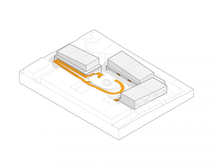 新设施为校园创造了一个门户,并引入了以前没有的室内外学习机会,为学校未来的学习空间设计设定了新的标准。现有的场地地形被用来连接上层和下层的坡道,以促进主动设计。悬空的门将教室与生动的坡地庭院连接起来,在自然环境的基础上为校园创造了一个新的身份。