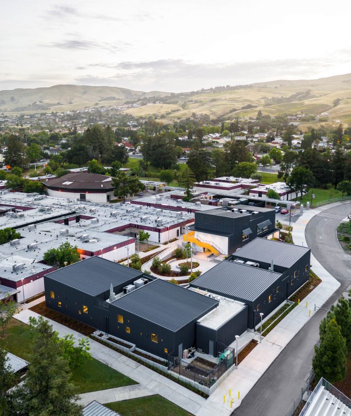 Originally constructed in 1965, Piedmont Hills High School is located in East San Jose, adjacent to the Diablo Range Mountains. For years, a large portion of the science program was housed in portable classrooms on an under-utilized, sloping site at the south edge of the campus. With the growth in student demand, the school needed to support the science program with a new facility that reflects the growing interest and importance of the sciences at the school. School leaders wanted the new complex to be distinct and express the dynamic nature of the sciences.