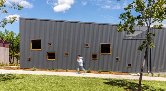 The new facility creates a gateway to the campus and introduces indoor-outdoor learning opportunities that did not previously exist, setting a new standard for the future design of learning spaces at the school. The existing site topography was used to connect the upper and lower floors with ramps that promote active design. Overhead doors open classrooms to the lively sloping courtyard which creates a new identity to the campus-based on the natural setting.