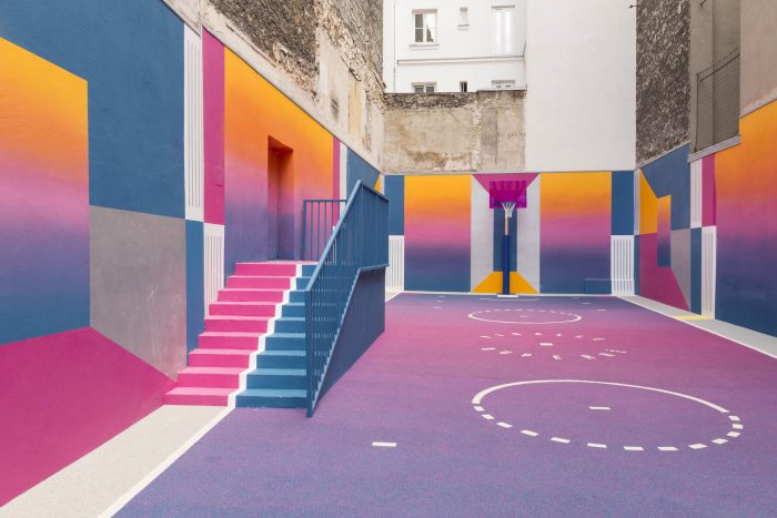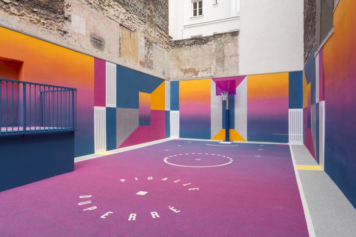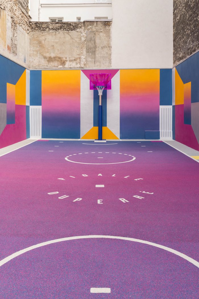 "The anatomy of the human body as well as it's performances have had a lifelong relationship with art. Since the legacy of Greek and Roman antiquity, sport is represented as a dominant idea within the beauty of an era. This never-ending quest for modernity has forged a strong bond between functionality and aesthetics over the decades. Through this new court, we wish to explore the relationship between sport, art and culture and its emergence as a powerful socio-cultural indicator of a period in time. We aim to establish visual parallels between the past, present and future of modernism from the « Avant Garde » era of the beginning of the 20th century, to the « Open Source » times we live in today, and our interpretation of the future aesthetics of Basketball and sport in general." Ill-Studio & Pigalle.