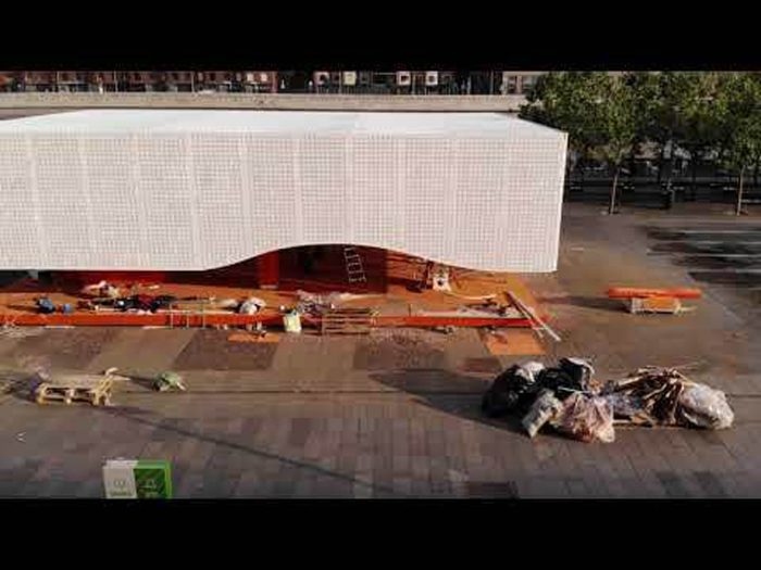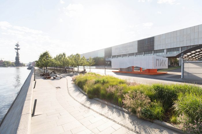 PIK Pavilion by Masterskaya Be is a temporary summer pavilion for public activities. In the winter of 2019 Masterskaya Be won a closed competition for the design of the pavilion for the real estate company. The concept of the summer pavilion develops in three aspects: the pavilion function - sports and educational events, the envelope - protects the main function from external influences and attracts visitors from outside, the curtain - allows to transform the space and create different scenarios inside the pavilion.