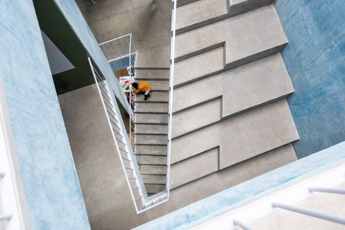 WORKac and IUA carefully studied the city’s PILARES already in operation in order to better understand how various neighborhoods and communities have adapted the various centers to their needs. Through this and the studying of the program of our PILARES, developed through the city’s close engagement with each neighborhood’s community stakeholders, flexibility emerged as a key aspect of the project. Instead of assigning various programs to separate spaces, we created a central staircase that acts as a continuation of the public plaza throughout the entire building, pushing infrastructural needs to the perimeter and allowing furniture to be reorganized seamlessly and to flow from one floor to the next as needed. This flexible approach leaves open the possibility for changes to the program over the lifetime of the building and allows it to evolve and adapt freely.