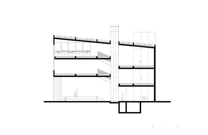 PILARES Lomas de Becerra位于墨西哥城丘陵地区的一个密集的十字路口,周围是热闹的步行街。建筑物的形状受到场地上现有树木的影响,并在转角处建立了一个公共广场。底层的对角线开口为各个方向提供了清晰自由的人行通道,邀请用户绕过广场,进入建筑。镶嵌在广场上的对角线墙起到了组织内部和外部过渡的作用。底层是开放的,内部空间以轻质玻璃立面为标志,向外开放,将广场空间向街面扩展,使其成为行人和整个社区的接触场所,并在此享受文化和社会活动。