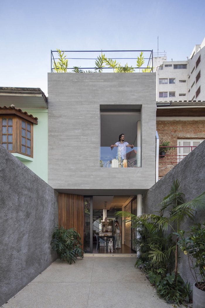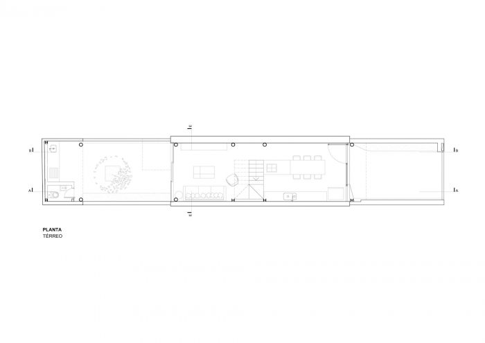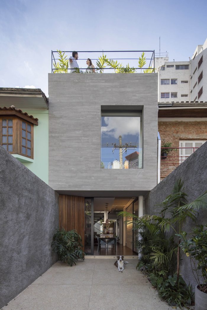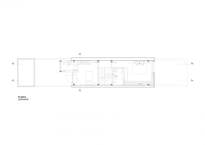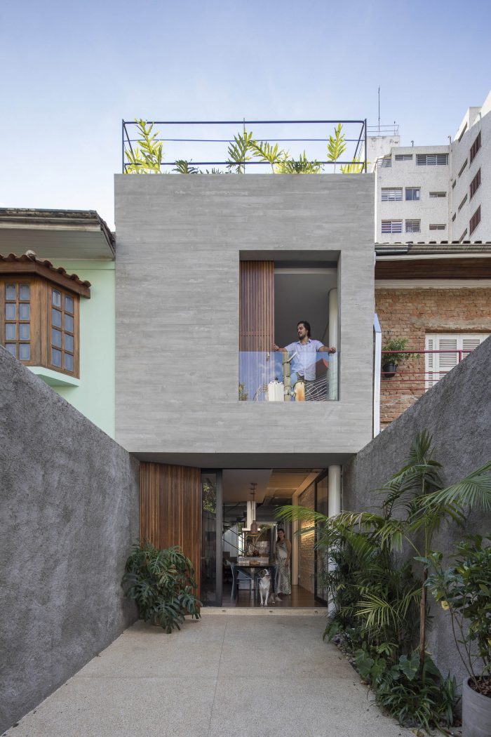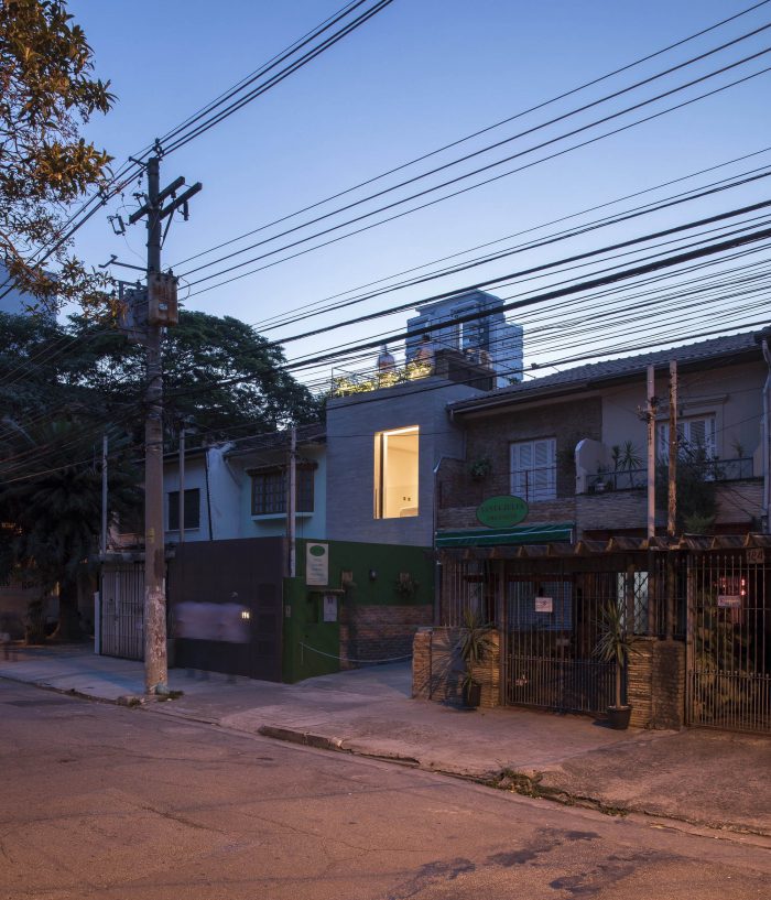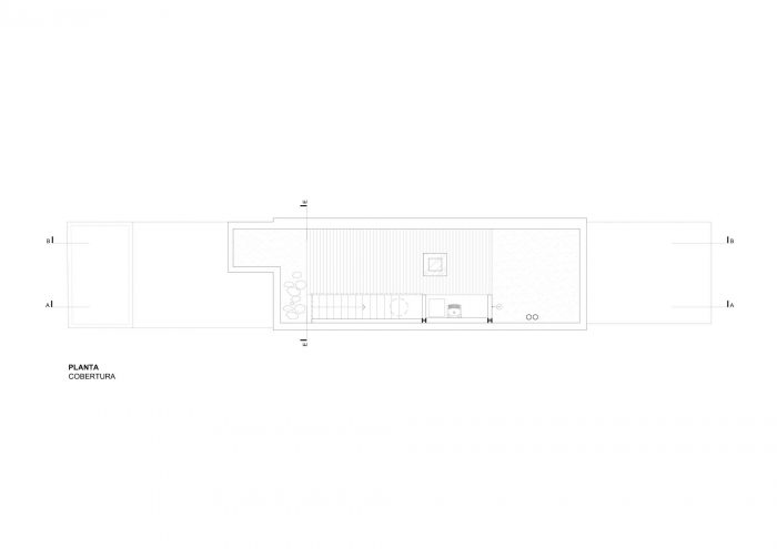 After the demolition, the urban plot measuring 4x24 meters was occupied with the new program which was divided into three levels: ground floor, upper and garden cover.