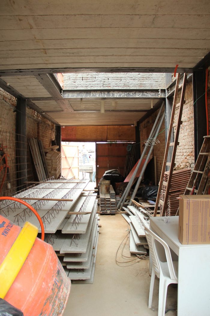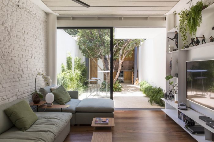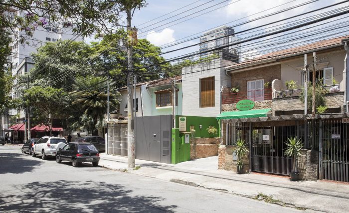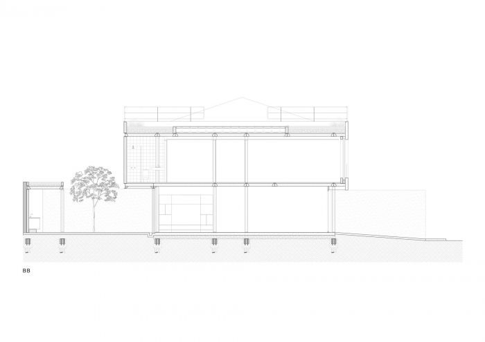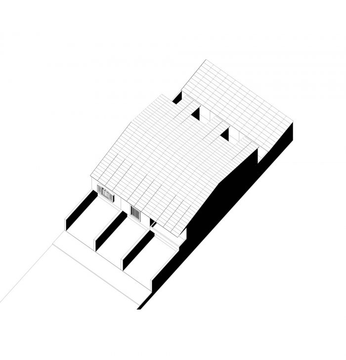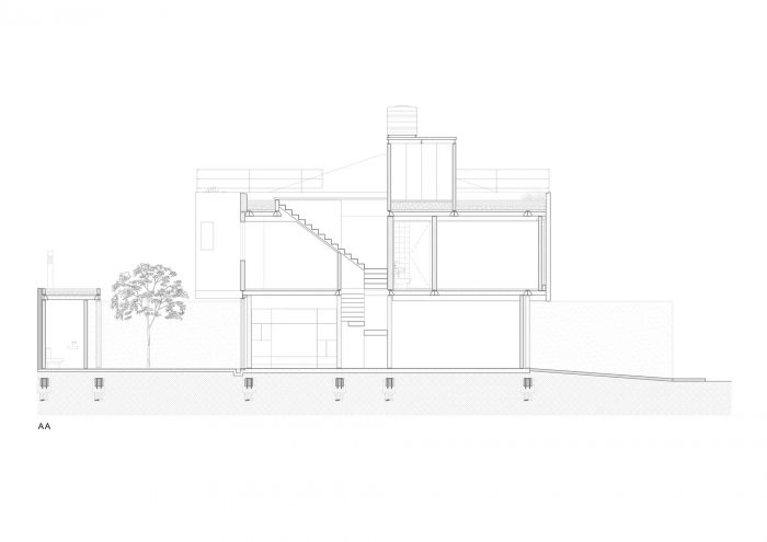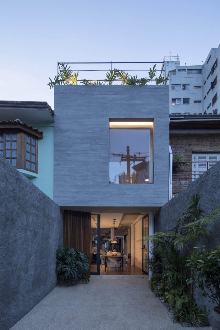 After the demolition, the urban plot measuring 4x24 meters was occupied with the new program which was divided into three levels: ground floor, upper and garden cover.