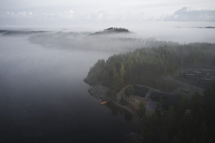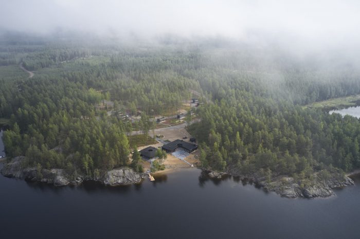 The buildings are situated on a lakeside lot amongst existing trees where they blend into the delicate Saimaa scenery with their dark exteriors, contrasted by the inviting and warm light wooden interiors. In the sauna- the restaurant itself, the lakeside sceneries and terraced outdoor leisure areas play an important part. The guests can enjoy summertime sunsets between high-quality restaurant meals and leisurely lounging in the sauna.