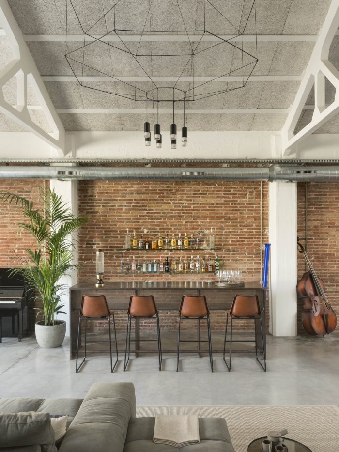 The owners desired to create a home whose main objectives were to cherish the architecture of the space, emphasizing the industrial style and materials with the new pieces incorporated into each area. Some original elements of the loft were kept, such as the visible installations, the natural materials and their imperfections. In addition, the customers had the idea of using the space both for living and for hosting events and exhibitions related to the art world. For this, a very versatile and multifunctional space was created capable of covering different uses, sometimes simultaneously.