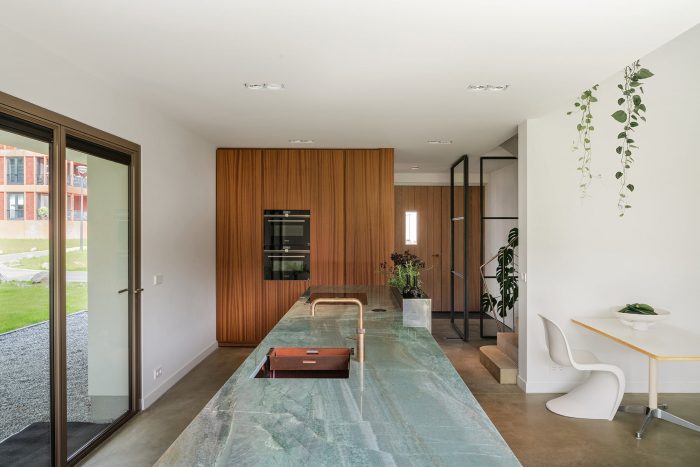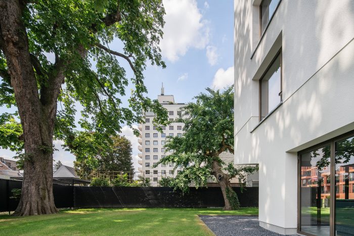 A private house at the Klevarie site in Maastricht. Within the historic city walls, this was before an old monastery garden, later a hospital, and a nursing home. But always served as hidden green space for the site. In our urban plan for the site, we cherished this green space. The gate on the street functions as a 'pars pro toto' for this project. The charming modernist nursing home of the architect Schellinckx from 1962 still stands at the site. A unique modernist incident within the cityscape for Maastricht standards.