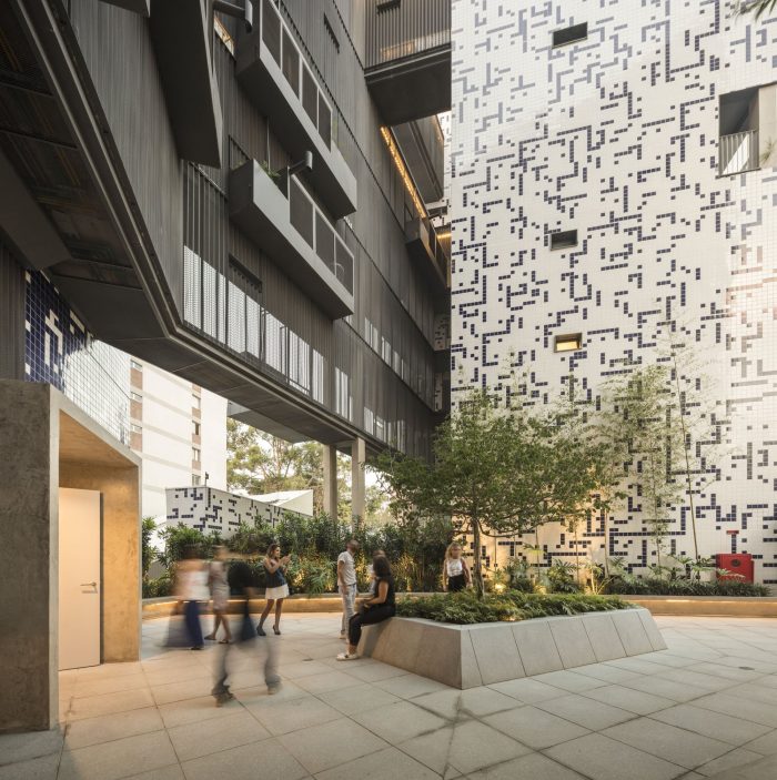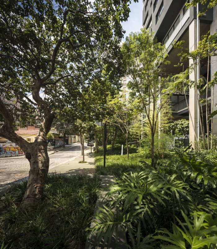 The particular urban base of Vila Madalena neighborhood in São Paulo defined the project created by Triptyque Architecture: a residential complex built in Arapiraca Street. The integration with its context - a neighborhood of old houses, close to bars and restaurants - was the main objective of Triptyque's architects, in order to make a natural dialogue between the 8000m2 volume of construction and its relief.