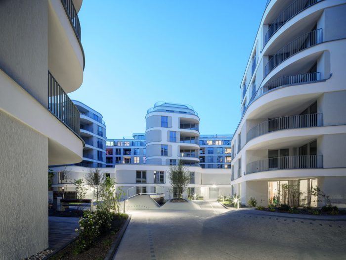 In each building, Port-o-Prenz combines various apartment types, preventing segregation. 240 units with 1–5 rooms are intended for various clienteles. This spatial constellation allows for a balanced residential structure of students, families, singles, and pensioners. In case of a change in personal living circumstances, it is thus possible to keep the familiar location, the social surroundings, and the neighborhood, and to move within the complex. These flexible living options are promoted by the rich infrastructure in the neighborhood. Depending on location, all apartments feature a balcony, loggia, or roof-top terrace.