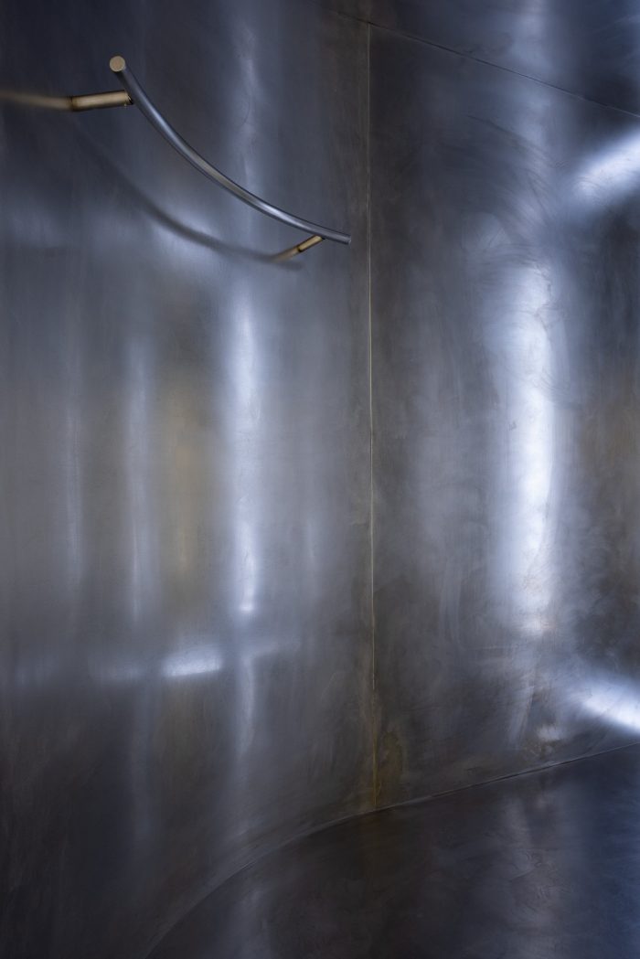 The new flagship store has three domains: Outer No.1, Outer No.2, and a meta-space. Outer 1 position itself as a primary exterior with multiple sources of light (natural light and streetlamps). Outer 2 grudgingly sits within the rigid interior frame. The shimmering reflection on the interior tiles grants another pool of meta-space to dive into. PAF is free from the didactic notion of time: gradually evolving and hinting at its independent state against any natural and man-made units. These uncanny assemblages of dimensions, matter, and lights within a single volume constantly renew and redefine themselves in a non-linear fashion with the procession of time.