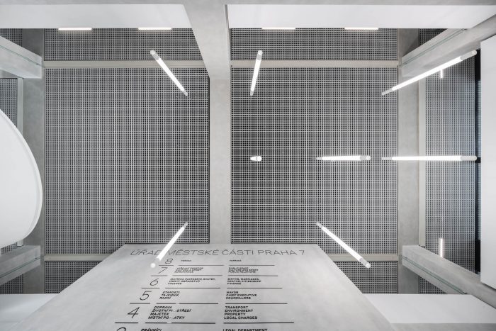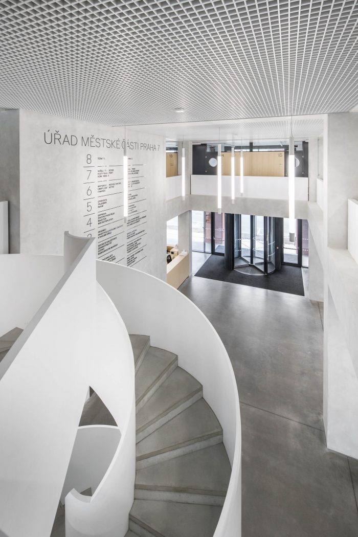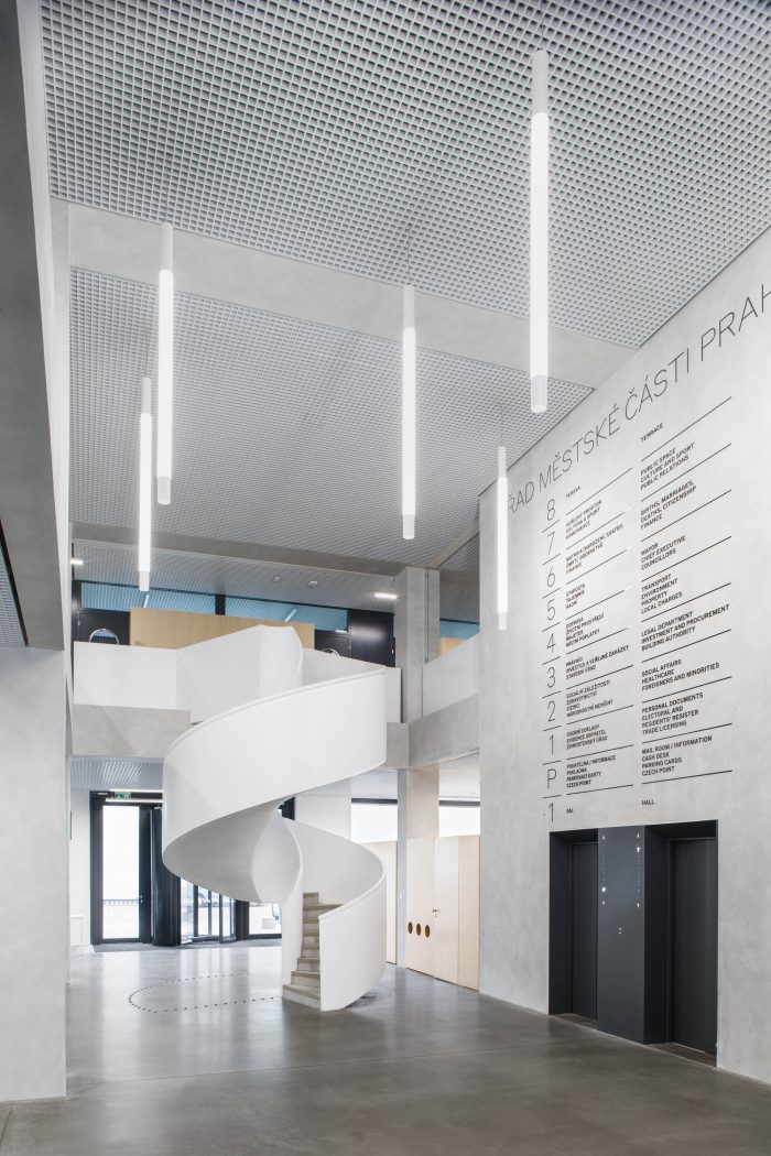 Expressions used during the reconstruction refer to the morphology and materials of Holešovice, the building respects a historical context of the district with its specifications, honor local industrial aesthetics. The original building was stripped to the core, only the necessary loadbearing constructions were left and the beautiful structural skeleton was exposed. The beauty of the civil engineering constructions lies in their sincerity and honesty. Therefore we honor the rhythm of the structure. We work with the motives which uplift a common building and make it noble as the town hall belongs. The town hall is a public building and it serves the people.