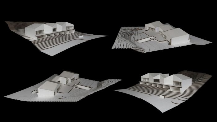 In fact, the north and south portions of the site are equally predominant in the development of the project: the interior circulation of the house and its compartmentation establish a visual relation varying between the view of the rice fields, facing north, and the interior of the site, facing south. The volume of the house is neither static nor monolithic, its shape is composed of movements on the north and south facades, dematerializing the continuity of the facade, providing the interaction with the exterior landscape, and granting dynamism to the interior space. The roof of the house takes part in this formal arrangement with the repetition of gable roof typologies.