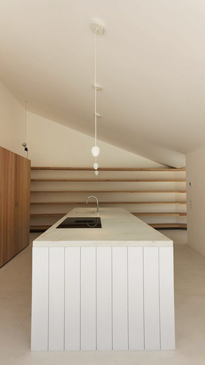 最后,设计试图重新配置原来的地形,以恢复连接北部公共空间的低层和南部场地的高层的自然坡度。房屋被放置在与场地南部一致的高处,使自然坡度自然地延续到场地的极限,房屋也从公共空间中抬高。两个露台重申了这一条件:北边的露台沿着房子的整个正面,南边的露台将室内与游泳池的体积结合起来。