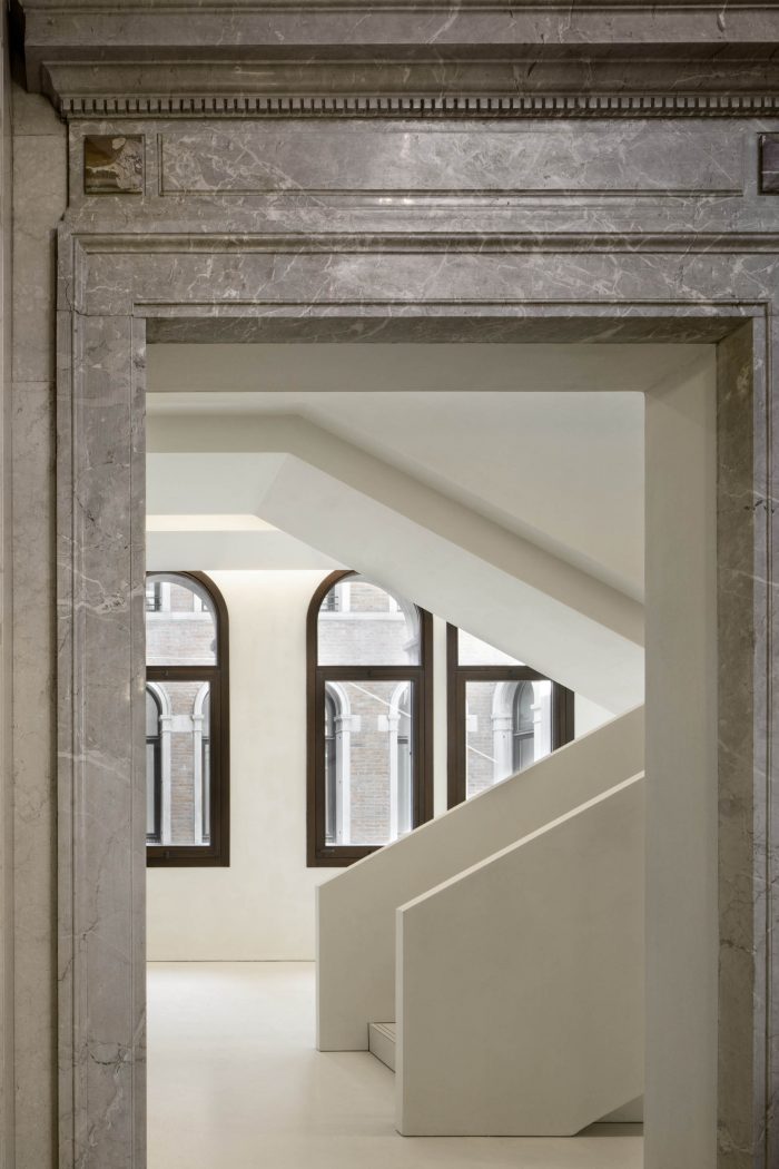 The Interventions looked to ancient, local and traditional construction techniques and made use of artisanal craftsmanship for the flooring, walling and ceiling, using pastellone and terrazzo, marmorino and scialbatura, but also cocciopesto and cotto, seeking not to impose but rather to inherit, in order to complete into a single whole and reclaim the integrity of what has been present for hundreds of years in probably the most representative place in Venice.