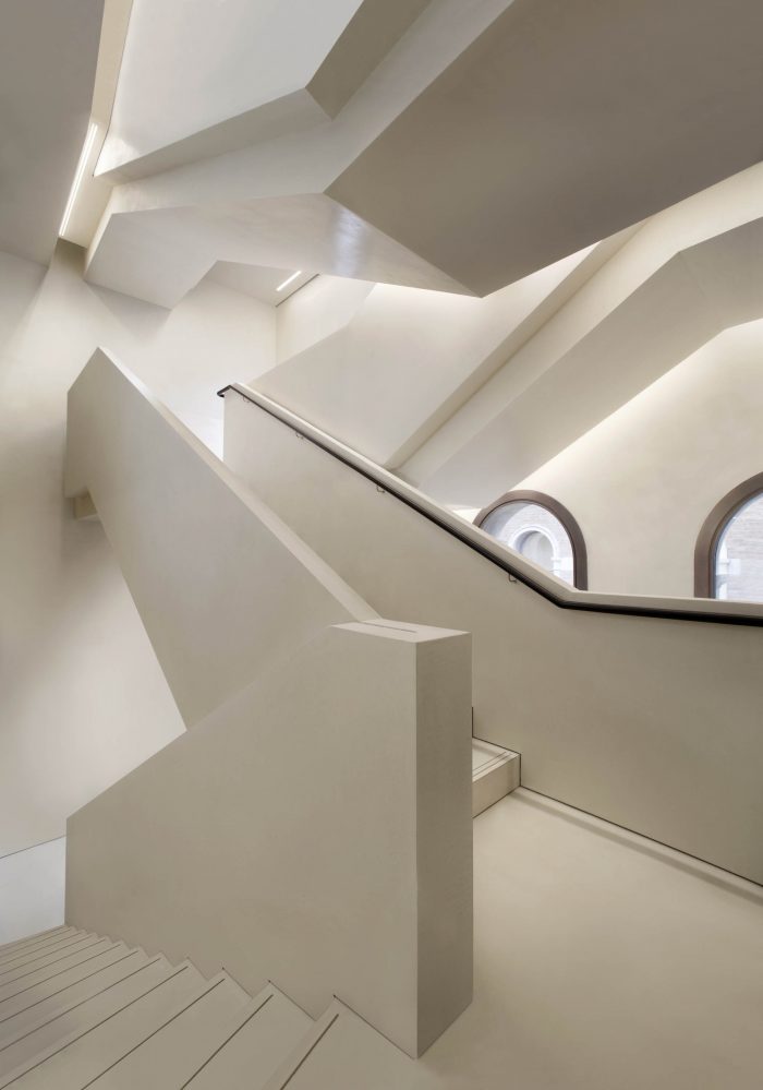 干预措施着眼于古老的、当地的和传统的建筑技术,在地板、墙面和天花板上使用手工工艺,使用pastellone和水磨石、marmorino和scialbatura,但也使用cocciopesto和cotto,不寻求强加,而是继承,以完成一个单一的整体,重新获得数百年来在威尼斯最具代表性的地方存在的完整性。