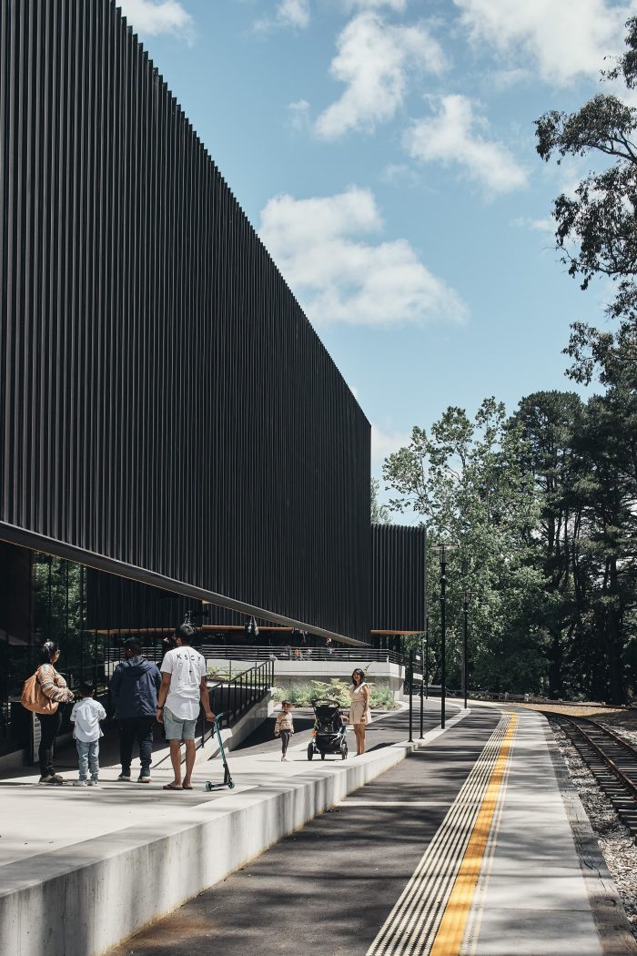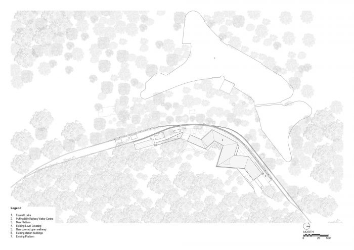 The importance of this stop on the railway was recognised with the decision to build a new Discovery Centre consisting of a café, commercial kitchen, visitor information services, interpretations, function rooms, staff offices, retail, educational facilities and amenities. The project brings together train enthusiasts and local park goers, creating a unique tourism amenity offering which collects the many users of the site in a single but complex building.