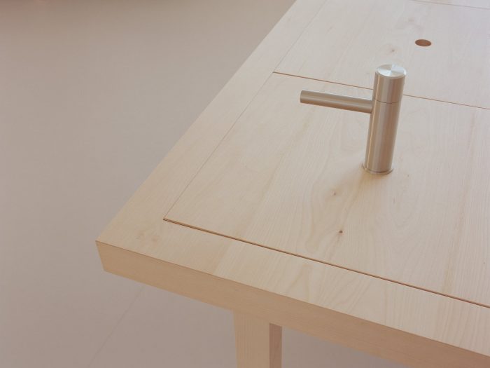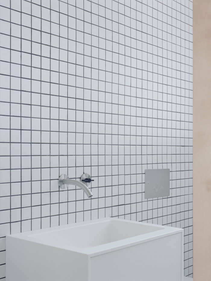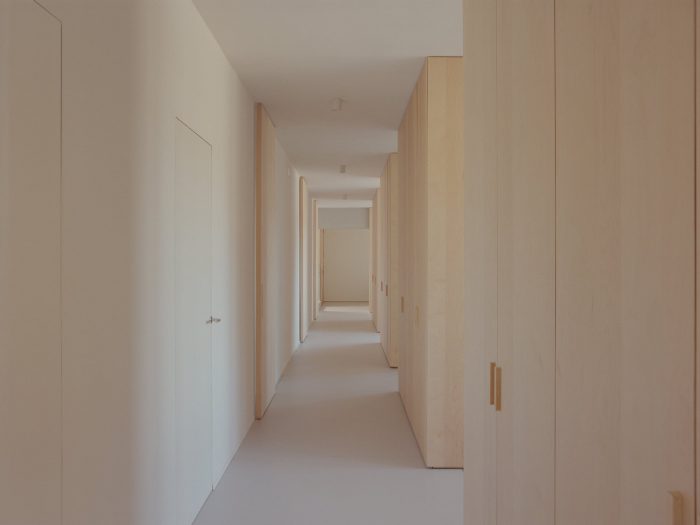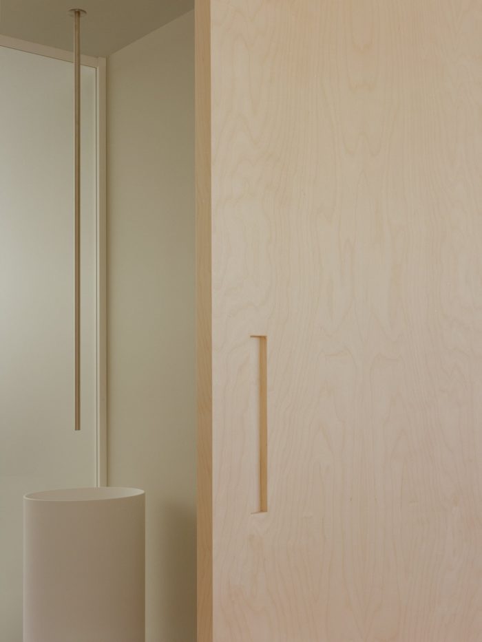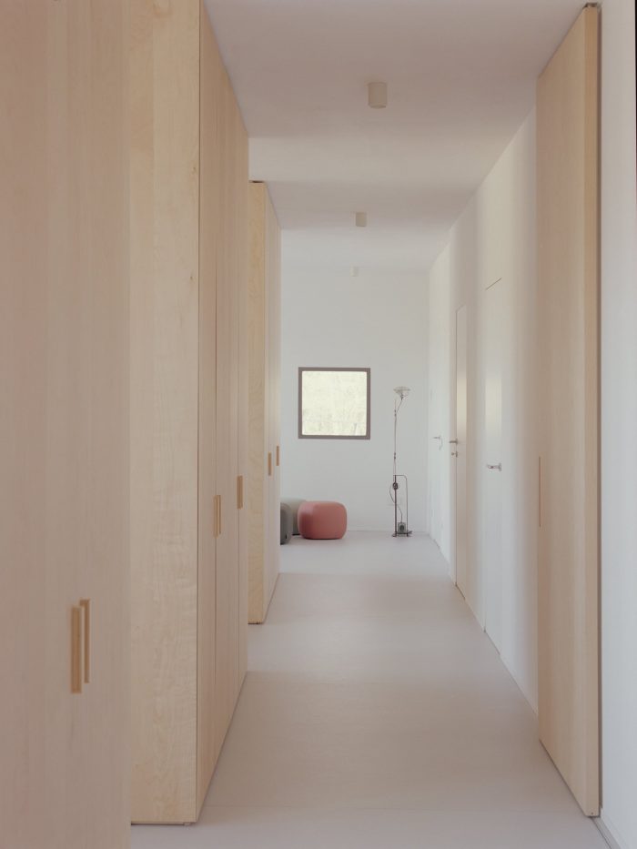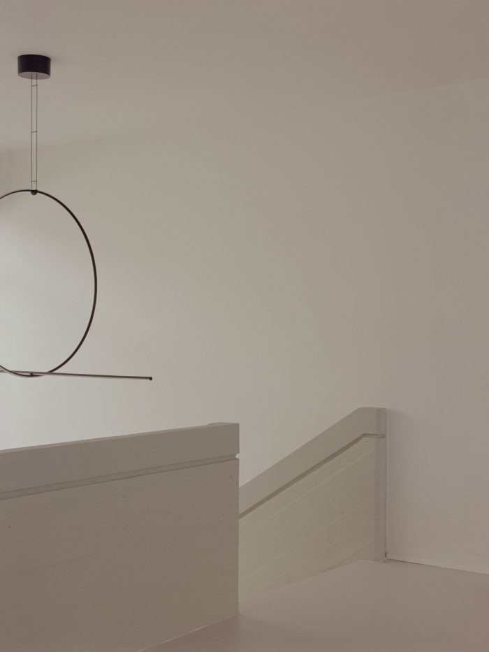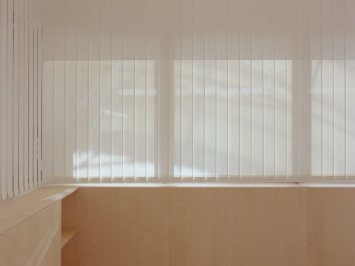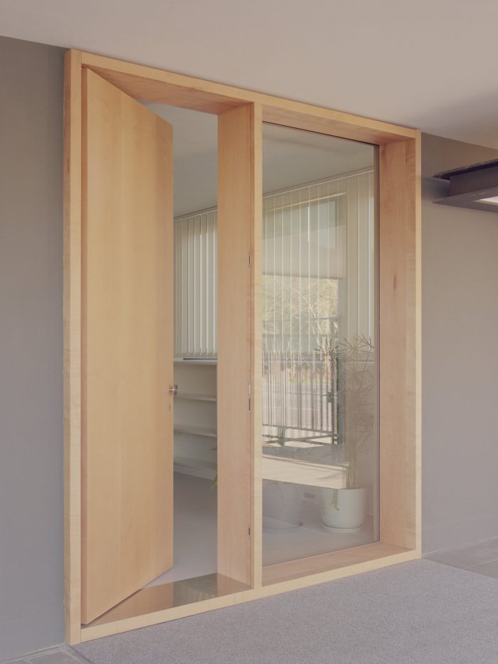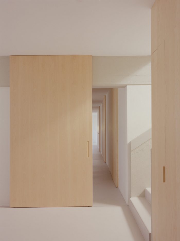 As well as acting as a container, these elements give the rooms a hierarchy and allow them to be separated through integrated sliding walls. The offices, that required more privacy, as well as the employee toilets and the server room, have been placed in the southern service strip between the entrance and the staircase to the first floor.