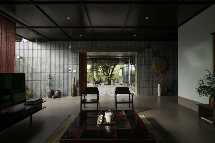 Keeping those values, this space is prioritized to be arranged in the center of the new house, with two openings to the orchard and especially the spacious front yard. Every reunion, anniversary, or spring comes... the brothers, relatives near and far, or neighbors can gather together in the yard, comfortably raise a glass, and admire the light countryside scenery, despite the impact of a little sunshine anh a little rain. In 2022, we were fortunate to be exposed to many interesting rural housing projects, each had a different story about people and architecture, but all with one question in common: What does the peaceful form of a house look like?
