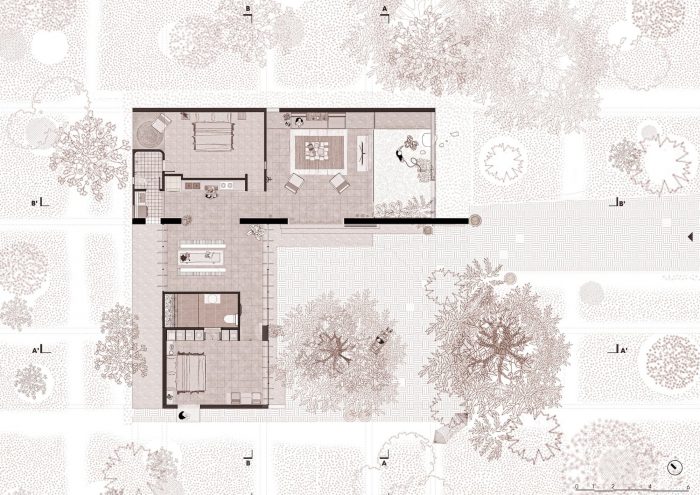保持这些价值,这个空间被优先安排在新房子的中心,有两个开口通往果园,特别是宽敞的前院。每当团聚、周年纪念日或春天来临时......兄弟们、远近亲戚或邻居们都可以在院子里聚在一起,舒适地举杯,欣赏轻盈的乡村风景,尽管有一点阳光和一点雨的影响。在2022年,我们有幸接触到许多有趣的农村住房项目,每个项目都有不同的人和建筑的故事,但都有一个共同的问题:房子的和平形态是什么样子的?