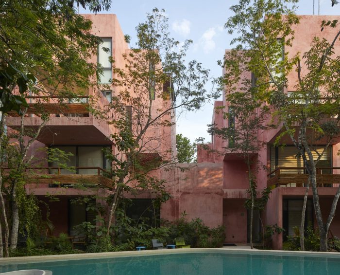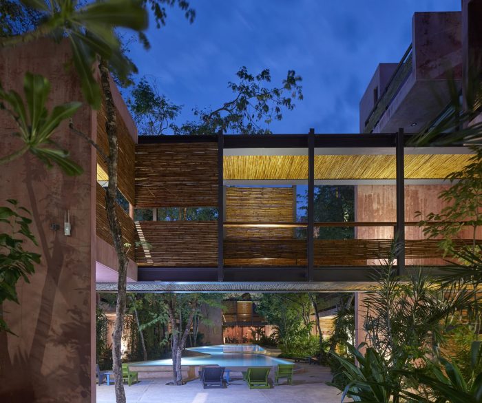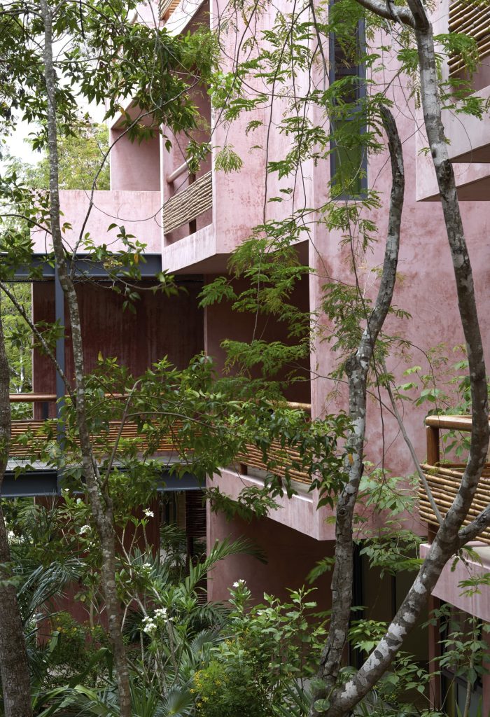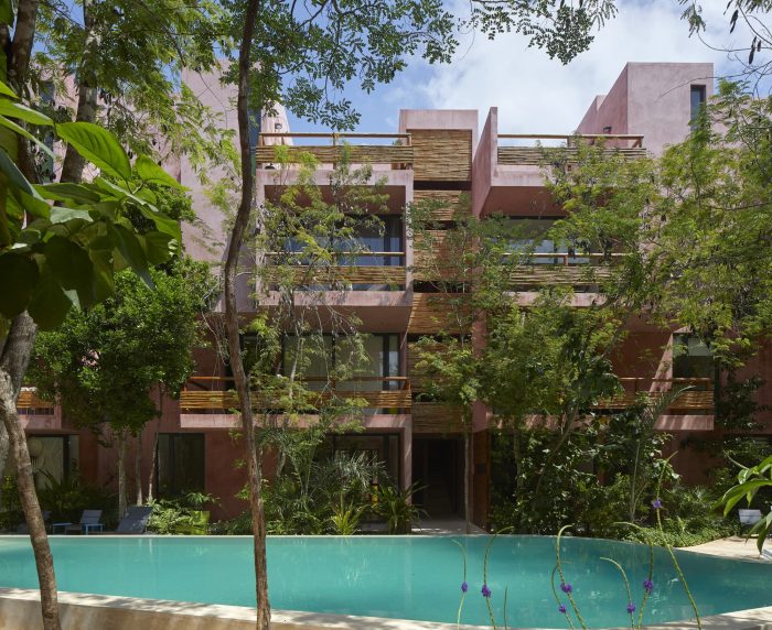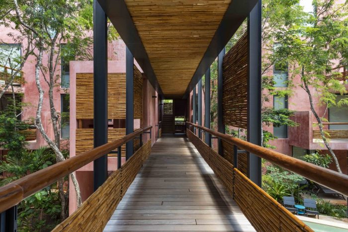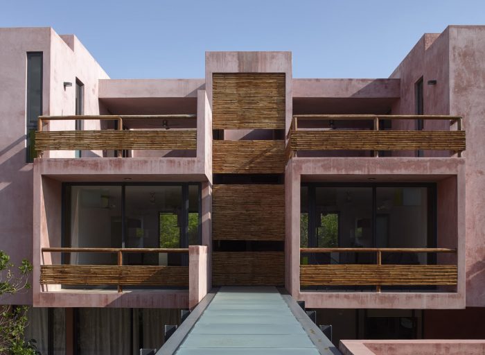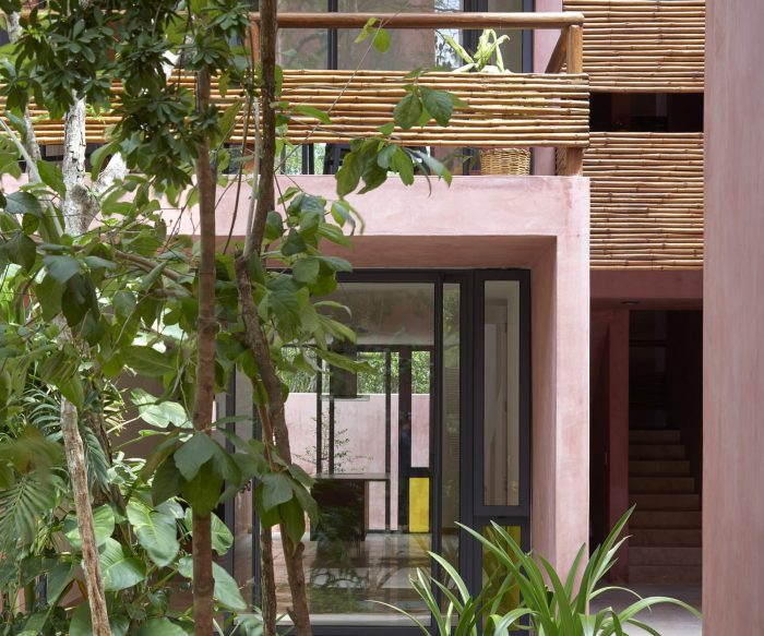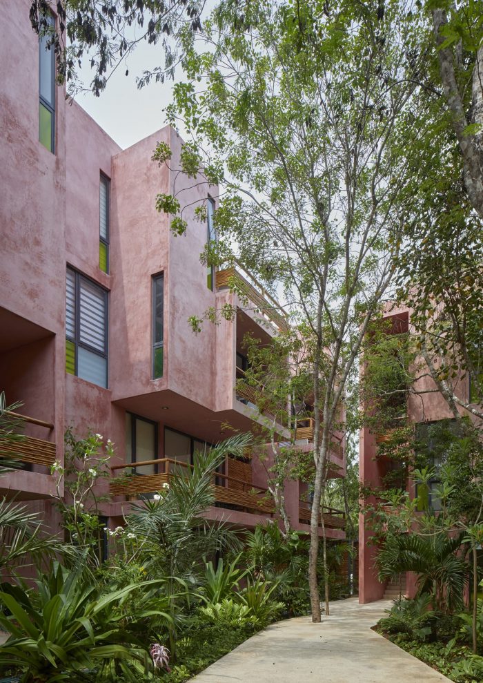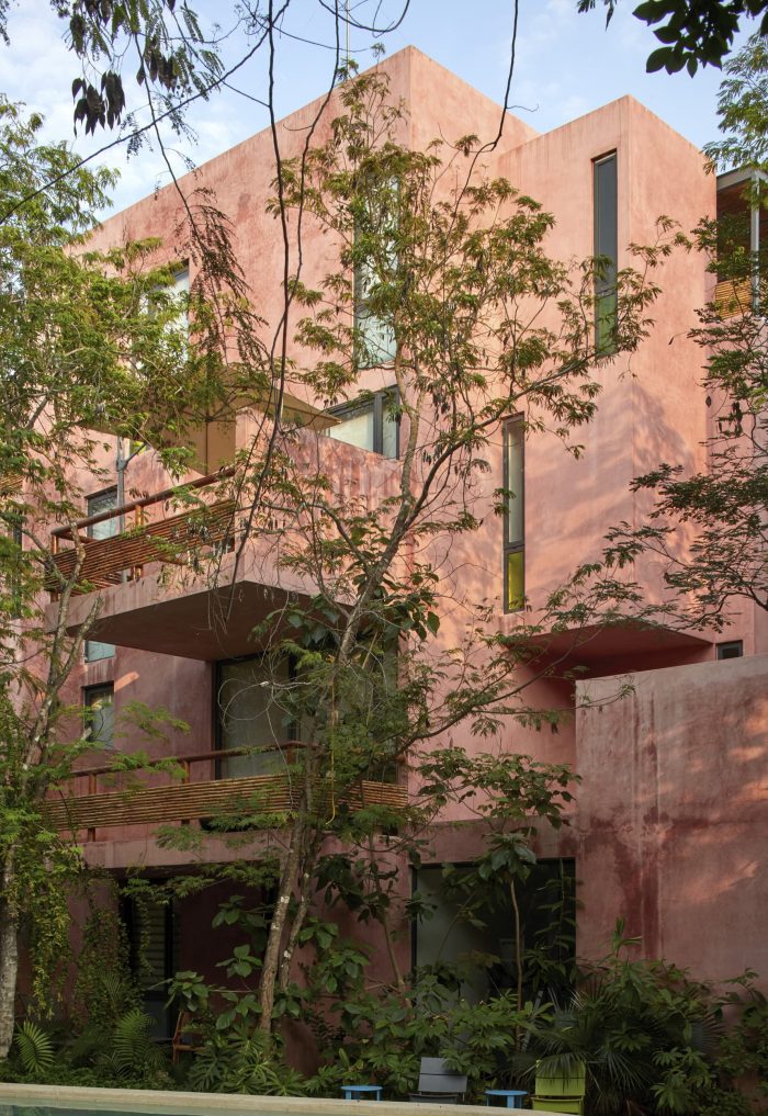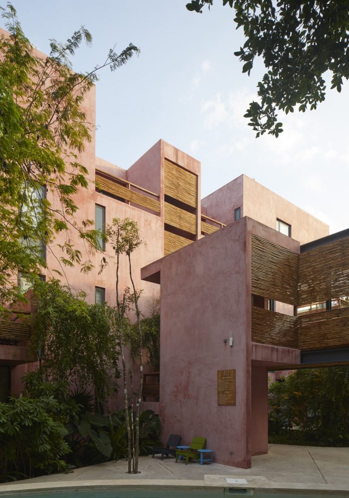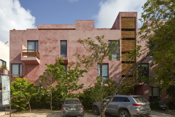For its part, the palette of materials is minimal: cement stucco with integrated red pigment for walls and exterior facade. This color selected for its optical qualities of being a background that allows contrast to the body and volume of the flora. The interior walls of the apartments are plastered, allowing each user to introduce a color palette of their own. The organic materials are bamboo, for guardrails and privacy screens, limestone, for floors and bathrooms, and wood, resistant to moisture and insects. In counterpoint, the industrial materials required of their durability and structural resistance: Steel, aluminum and tempered glass in three degrees of opacity with an accent of color. For us, this project meant undertaking the challenge of making commercial architecture with local components and sensitivity to the particular conditions of the site, to demonstrate that quality design, measured in quality spaces reflected in quality of life for users, is a good deal.