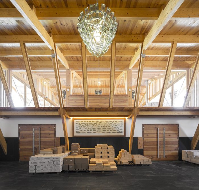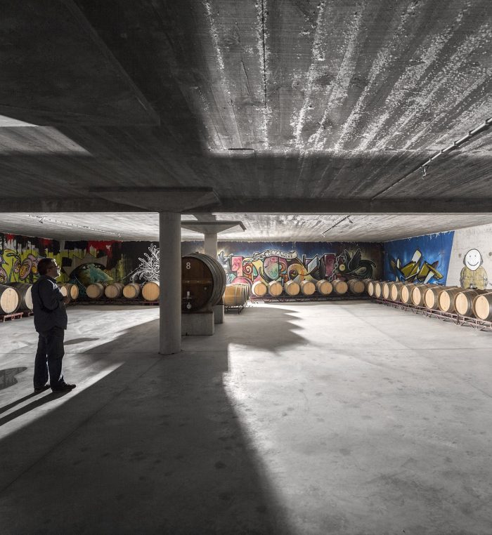 Below this hall, two rooms in the basement will accommodate the treatment and resting of the wine. At the lower level and attached directly to the existing winery, a space for temporary storage and distribution will be created.