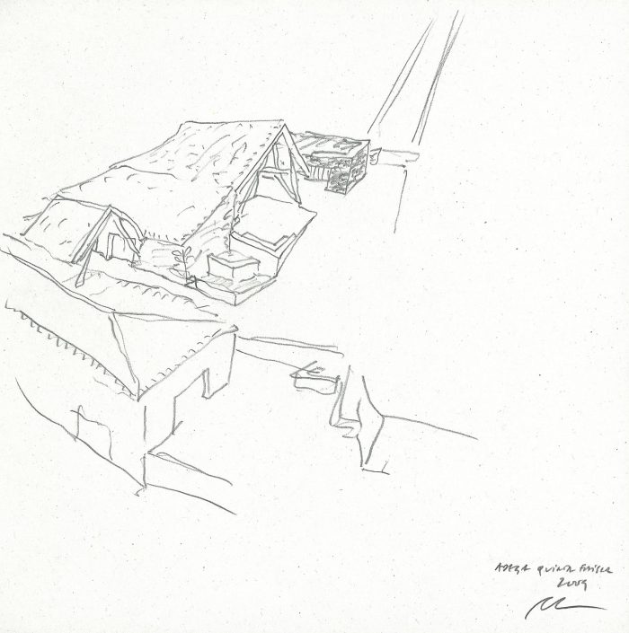 I am asked to lunch at the Quinta da Faísca, Alto Douro Vinhateiro, Favaios. This way of beginning architecture with a lunch is an interesting one, and full of flavours, smells and conversation. Architecture, or the act of thinking about architecture is a solitary activity, but it requires conviviality, information and the specific knowledge about both the functions and the future users of the buildings to be designed. And it requires Time.