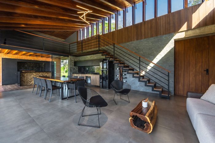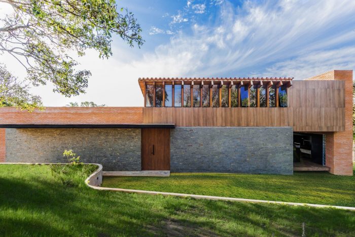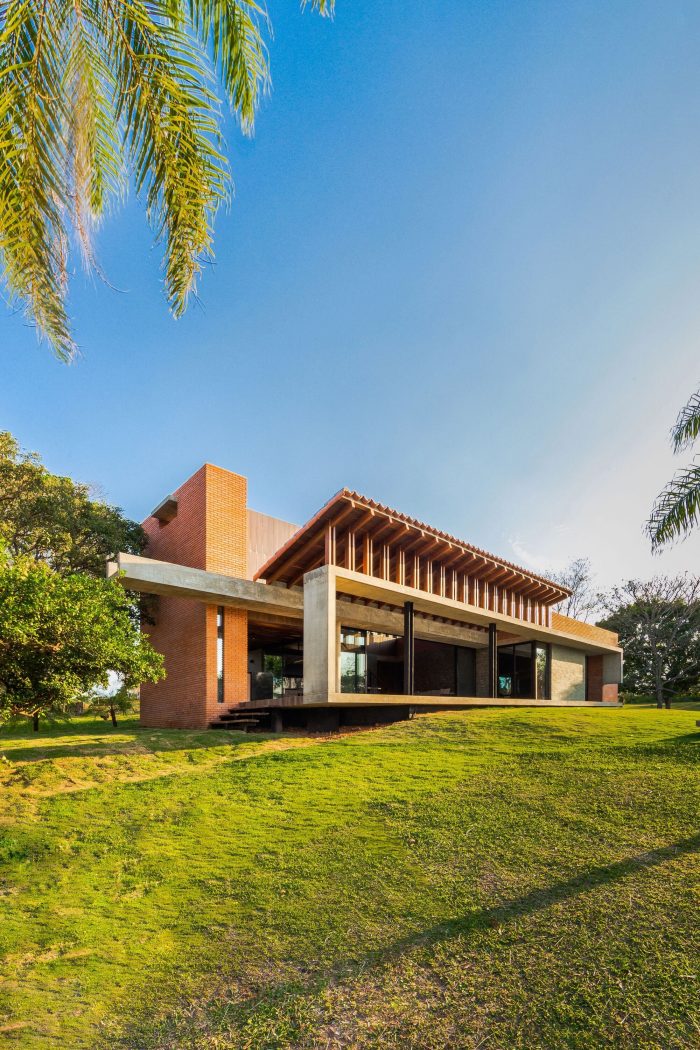 Casa de Campo Quinta Quebracho is a weekend home and is located on a one-hectare property located in a rural community twenty-five kilometers from the city of Santa Cruz de la Sierra, Bolivia. Starting from the construction of the entrance to the property that did not exist before, we propose a path that will take us to the house located in the highest part of the place, within an irregular topography and surrounded by a native forest of exuberant vegetation.
