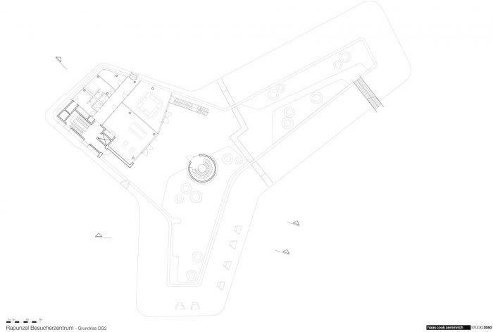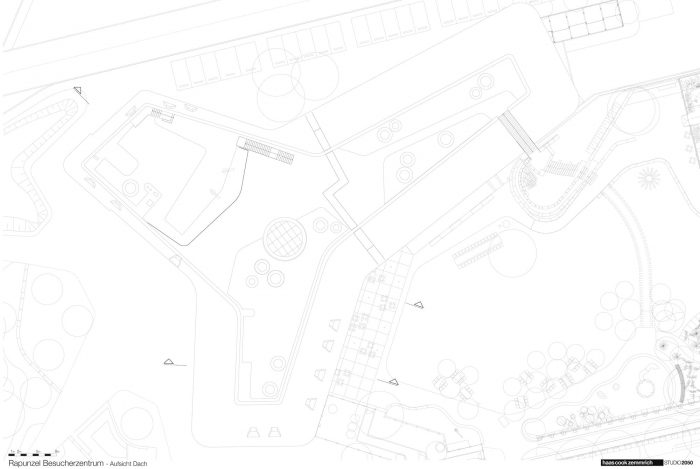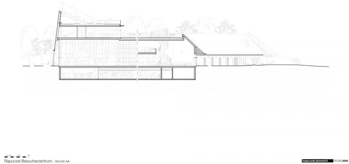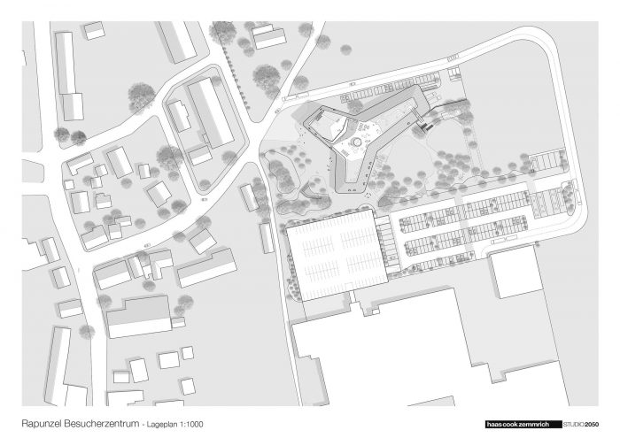 The address-forming building sculpture welcomes every visitor from afar through the northern high point - the Rapunzel Tower. The fairytale garden surrounds the house and extends to the roof. An open and invitingly accessible sculpture where at the end the crow's nest allows a view of the landscape.