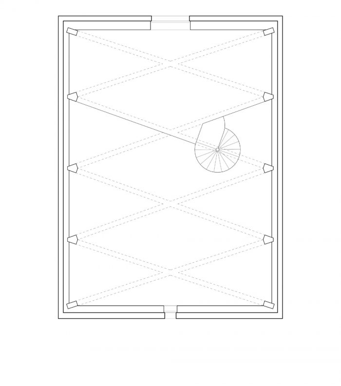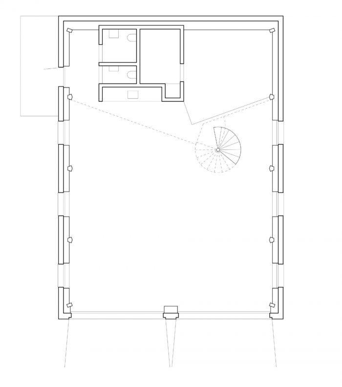 今天,这座多功能的建筑被提供给科技领域的创新创业公司使用。它在画廊上有一个大的会议室,在底层的混凝土核心区旁边有一个小的会议室,它提供一个小厨房,以及湿单元和建筑服务。两层楼通过一个独立的镀锌钢制成的螺旋楼梯连接起来,该楼梯构成了主房间的核心,成为吸引眼球的焦点。