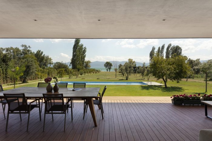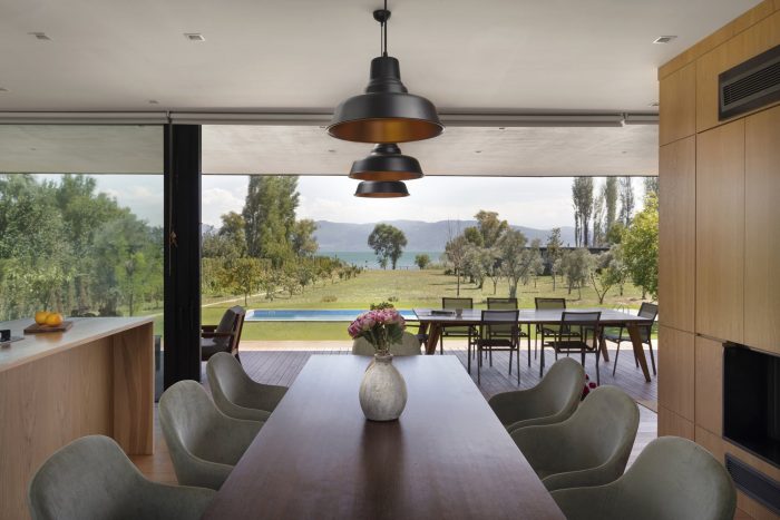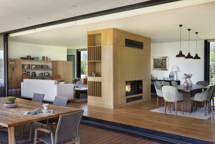 As we were designing the interior, we also ended up designing the landscape simultaneously to ensure a better viewing experience from inside the house. We designed every little detail such as the kitchen, bathrooms, beds, doors, tables, sofas, coffee tables, wardrobes, fireplace, cabinets, lighting, and all its functions and forms. The last part was designing the form of the house. We needed shade from the sun for outdoor living and to keep the house cool during hot summer days.